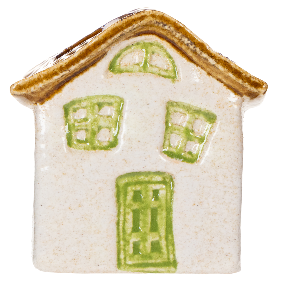 Questo grazioso portacandele a forma di casetta, realizzato in ceramica di alta qualità, colpisce sia per il suo design delizioso che per la sua pratica funzionalità. Con un'altezza di 11 cm e un diametro di 10 cm, offre ampio spazio per le candeline standard. La sua tonalità verde naturale si abbina perfettamente sia agli stili di arredamento moderni che a quelli rustici. L'affascinante tetto con le sue curve delicate e i dettagli decorativi su finestre e porte conferiscono all'oggetto un carattere autentico, quasi come una casetta da favola in miniatura.