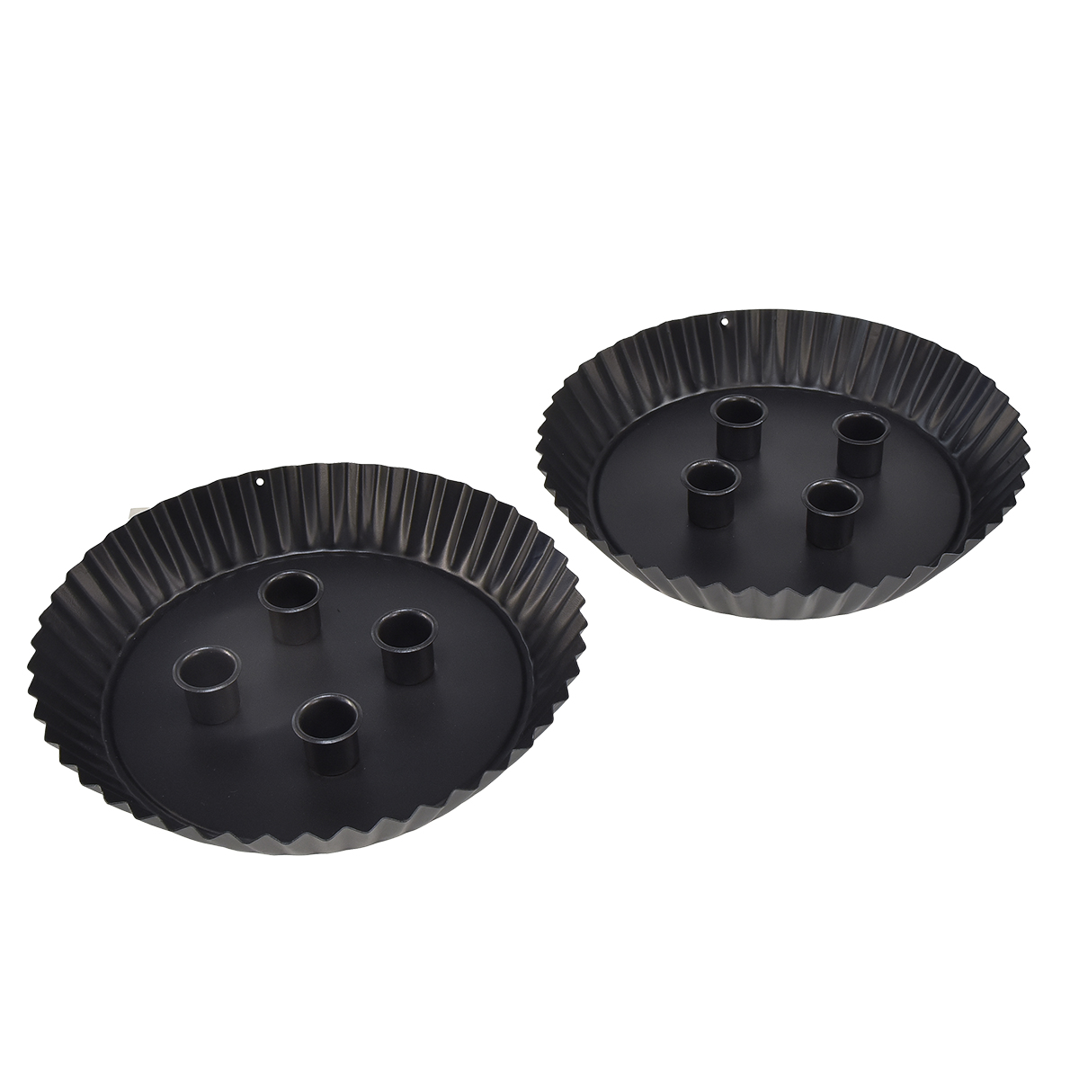 Portacandele in metallo a forma di torta – Nero, Ø 24 cm – Elegante decorazione da tavolo per 4 candele – 2 pezzi