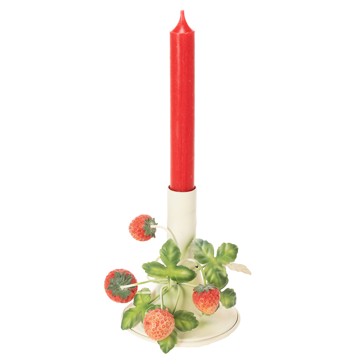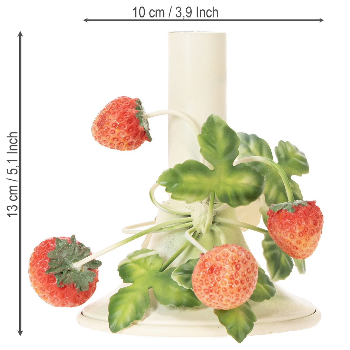 Portacandele in metallo con decorazione a fragola, color crema estivo, H13cm