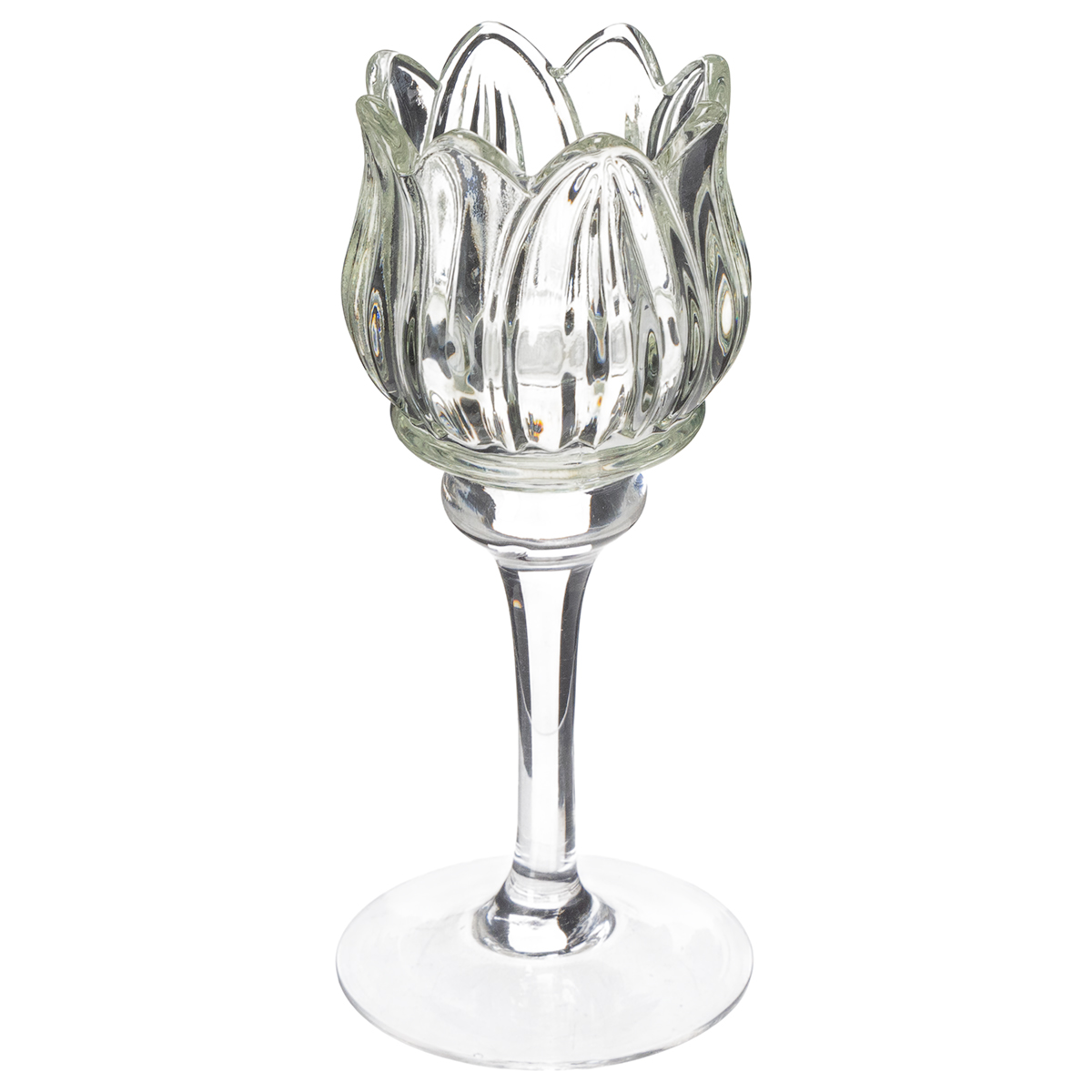 Portacandele in vetro, a forma di fiore decorativo per un ambiente elegante, 17 cm