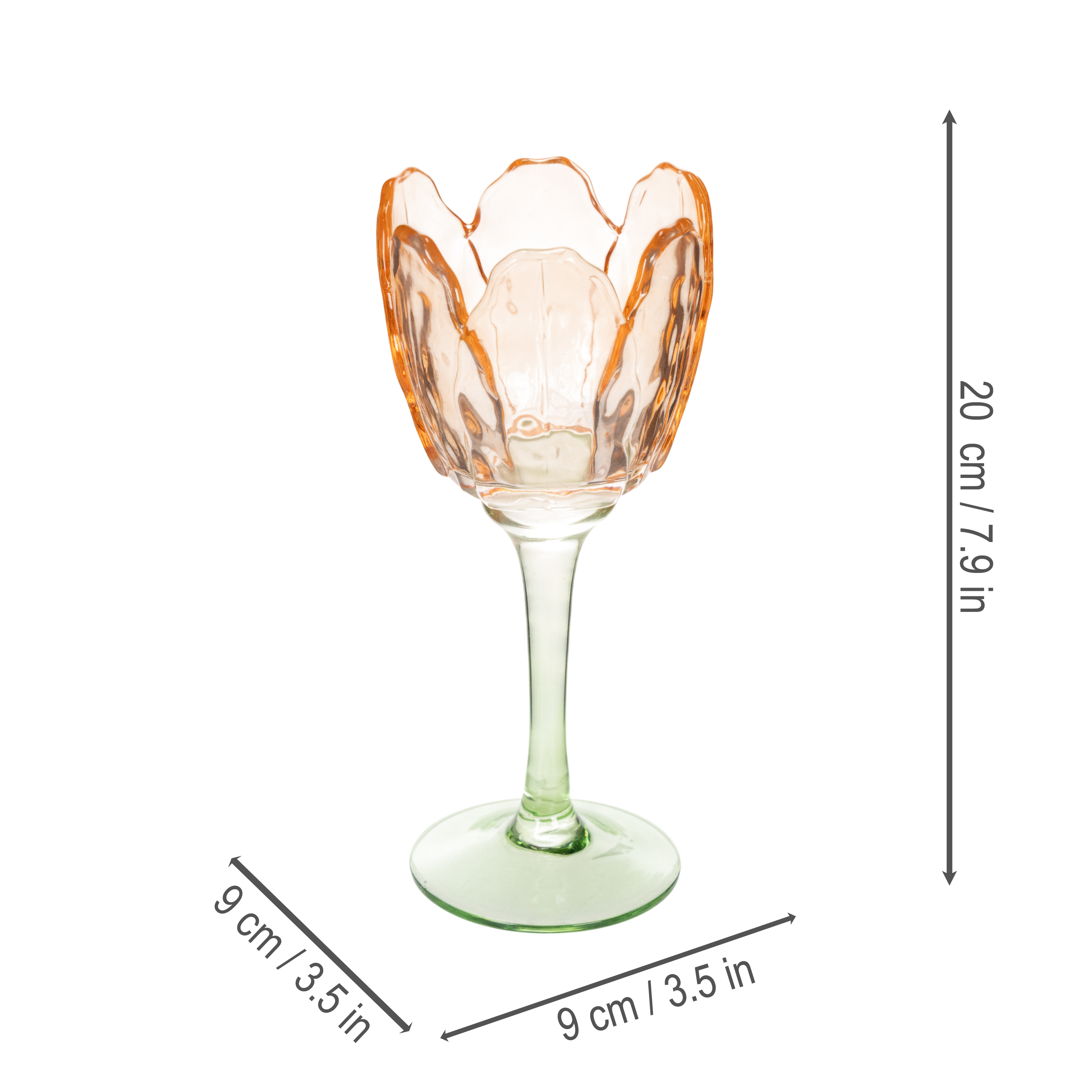 Questo portacandele in vetro colpisce per la sua forma elegante e la sua versatilità. L'apertura a forma di fiore ricorda un delicato tulipano in fiore, perfettamente progettato per contenere una calda e invitante luce di candela. Con i suoi 9 centimetri di lunghezza, larghezza e diametro e 20 centimetri di altezza, si adatta perfettamente a qualsiasi ambiente senza essere invadente. Le delicate tonalità arancioni del vetro si armonizzano perfettamente con una varietà di stili di interior design, dal country e shabby chic al moderno e romantico.