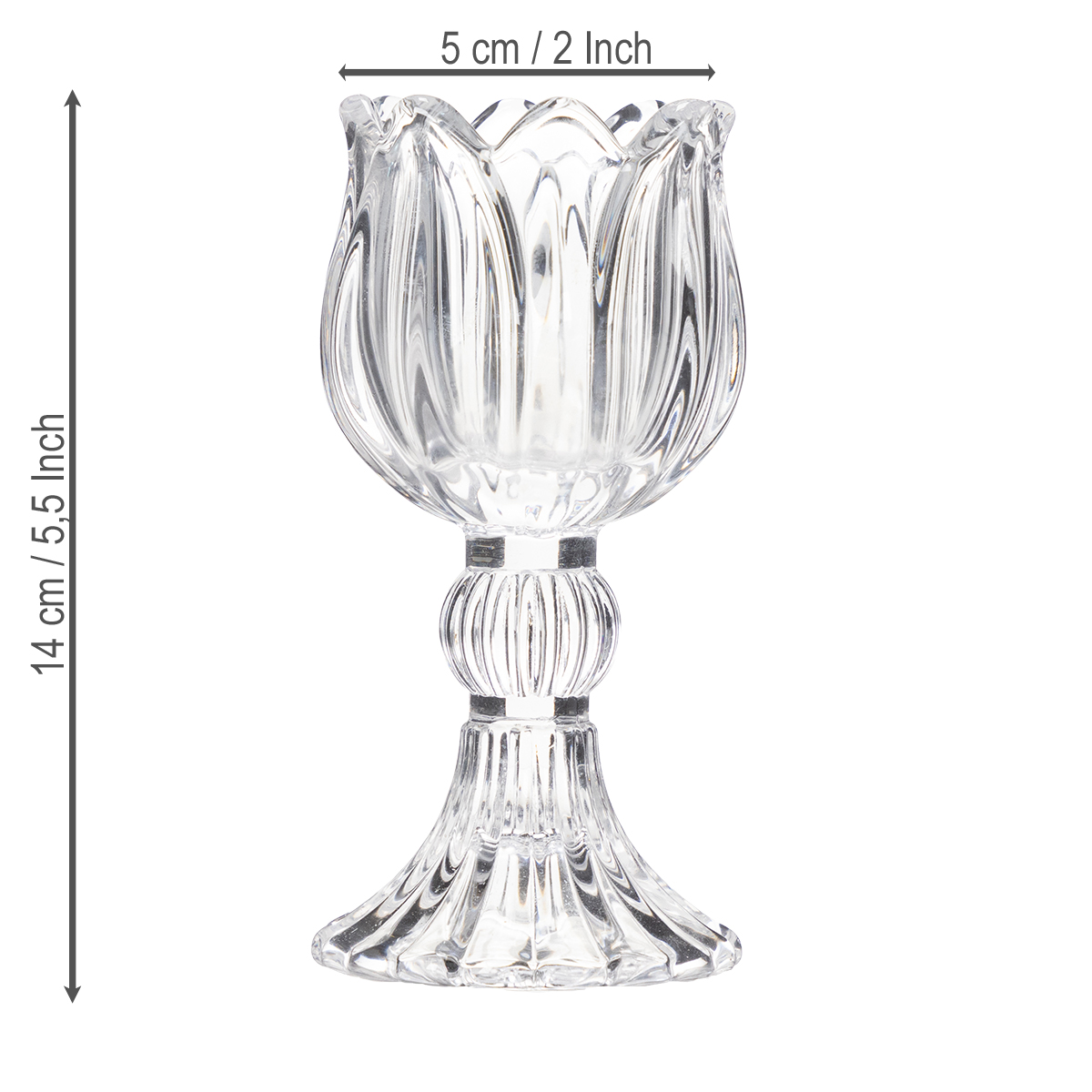 Nome del prodotto: Portacandele in vetro con motivo floreale per un'elegante decorazione da tavola, 14 cm, 2 pezzi