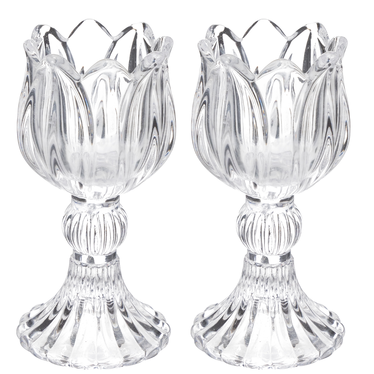 Portacandele in vetro con motivo floreale per un'elegante decorazione da tavola, 14 cm, 2 pezzi