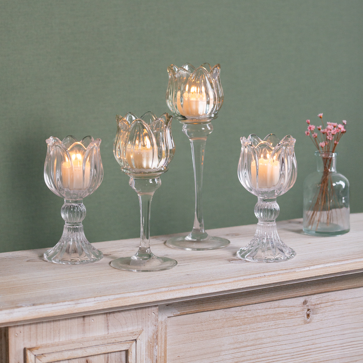 Decorazione da tavolo portacandele in vetro: eleganza in forma floreale