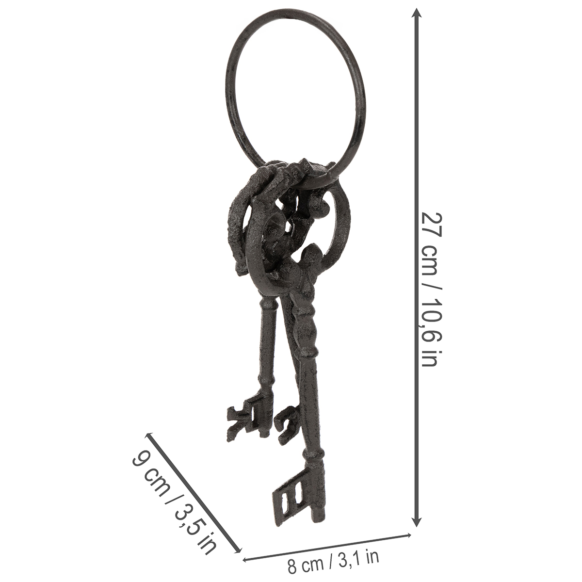 Vuoi aggiungere un tocco speciale e affascinante alla tua casa? Allora dai un'occhiata a questo incantevole portachiavi decorativo con chiavi in stile antico! Che sia posizionato su una comoda credenza, esposto come elemento decorativo da parete o disposto come esclusivo accessorio per la casa su un tavolo, questo portachiavi antico porta un tocco di nostalgia in ogni stanza. Il design intricato e la robusta struttura in metallo rendono questo pezzo decorativo un tesoro vintage di lunga durata. Con tre chiavi decorative raccolte su un unico anello, questo accessorio per la casa ti trasporta in un'epoca passata ed è un vero colpo d'occhio.