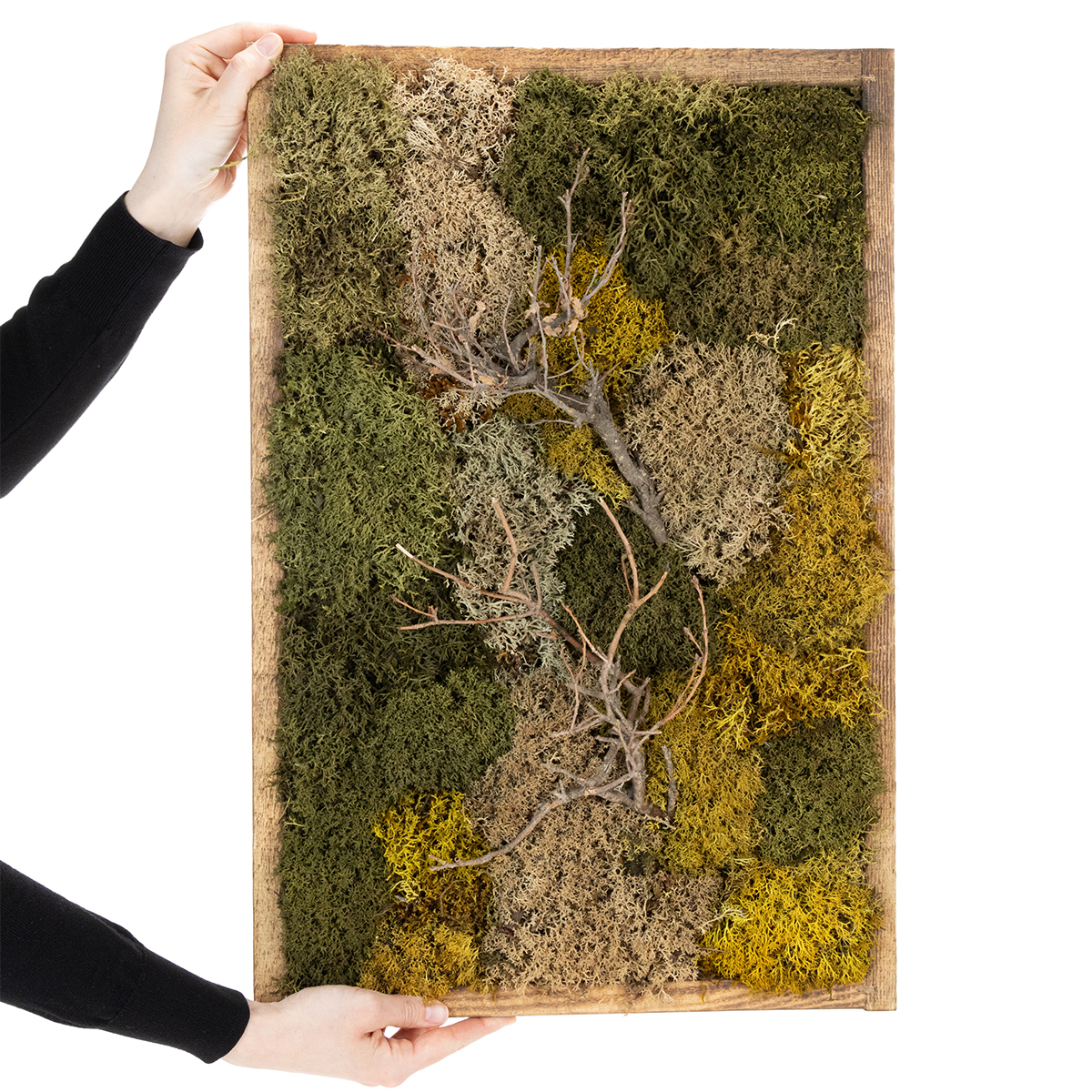Scopri la bellezza naturale e la tranquillità con la nostra variegata immagine di muschio. Il vero muschio stabilizzato combinato con rami accuratamente selezionati porta l'atmosfera armoniosa della natura direttamente a casa tua o in ufficio.