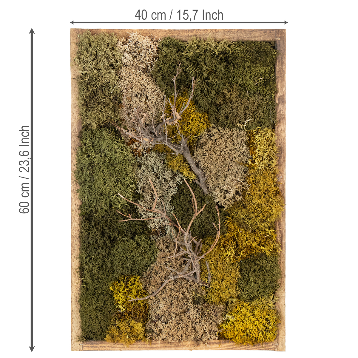 Quadro con muschio, muschio e rametti veri e conservati, naturale, 60×40 cm