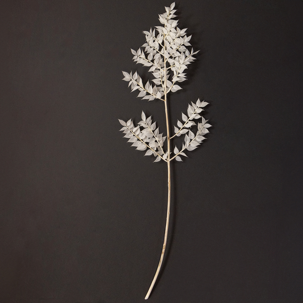 Il Ruscus sbiancato, con il suo colore crema chiaro, può essere utilizzato per creare un ricco contrasto con piante secche, rami decorativi e piante esotiche di colore rosso, nero, verde o rosa, rendendolo più discreto rispetto ai rami decorativi di un bianco puro.