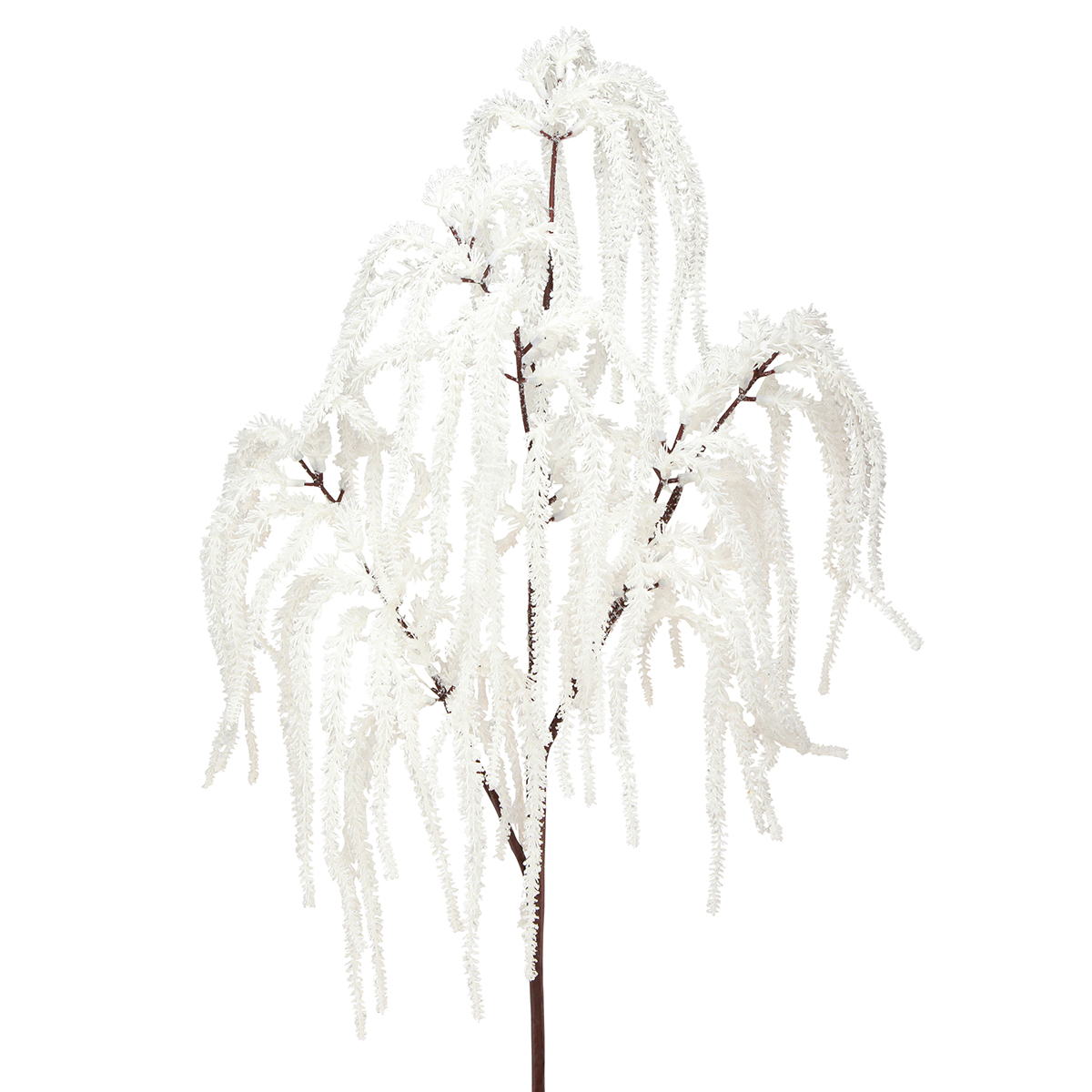 Ramo decorativo di salice piangente bianco innevato: decorazione invernale con glitter