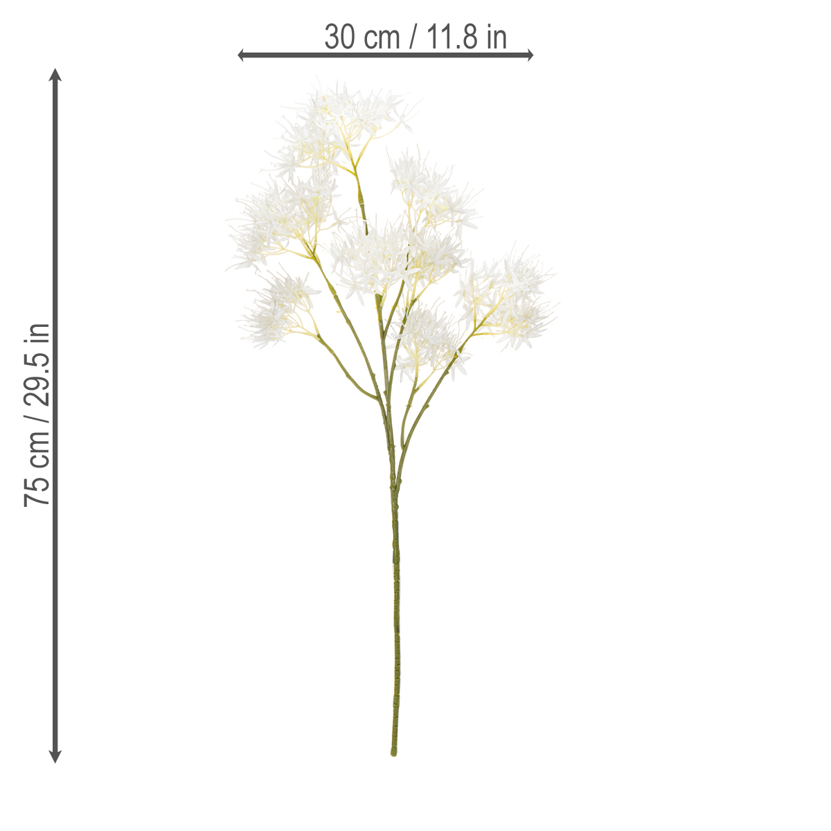 Rendi questo ramo il punto forte dei tuoi ambienti. La sua forma slanciata e l'aspetto vivace lo rendono versatile. Abbinalo ad altri fiori bianchi artificiali o usalo come decorazione a sé stante. La sua eleganza minimalista risplende nei vasi alti. Si armonizza perfettamente con stili di interior design sia moderni che classici. Che venga utilizzato per decorare eventi, per creare un tocco di stile in ufficio o abbinato ad altri rami nelle lounge degli hotel, i suoi utilizzi sono versatili e sempre efficaci!