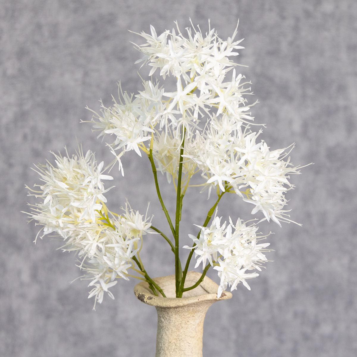 I fiori bianchi simboleggiano da sempre purezza, eleganza e nuovi inizi. Questo simbolismo li rende particolarmente apprezzati nelle decorazioni per matrimoni e celebrazioni. Irradiano tranquillità e chiarezza, valorizzando qualsiasi ambiente. L'elegante semplicità di questo ramo di fiori artificiali sottolinea queste qualità e le mette in risalto alla perfezione. Che sia per occasioni speciali o come decorazione permanente, questo accessorio incarna uno stile senza tempo e una bellezza classica.
