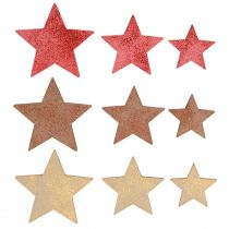 Decorazione a stelle sparse in legno arancione 3 colori Ø3,5/5,5/7cm 48 pezzi