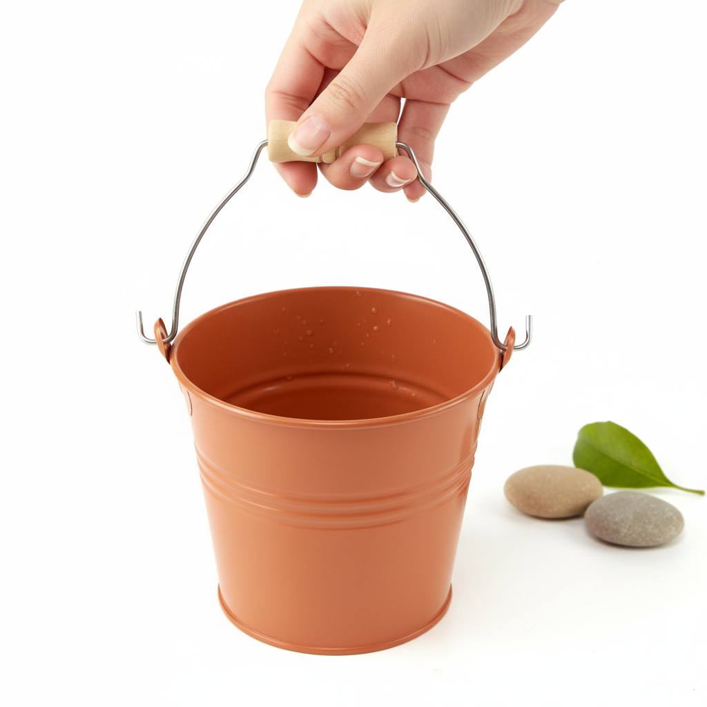 Oltre alla sua forma classica, il secchio ha un manico mobile, al quale, come punto culminante, è fissato un manico in legno non trattato. Ciò conferisce alla fioriera decorativa un bellissimo look vintage che si adatta armoniosamente ovunque.