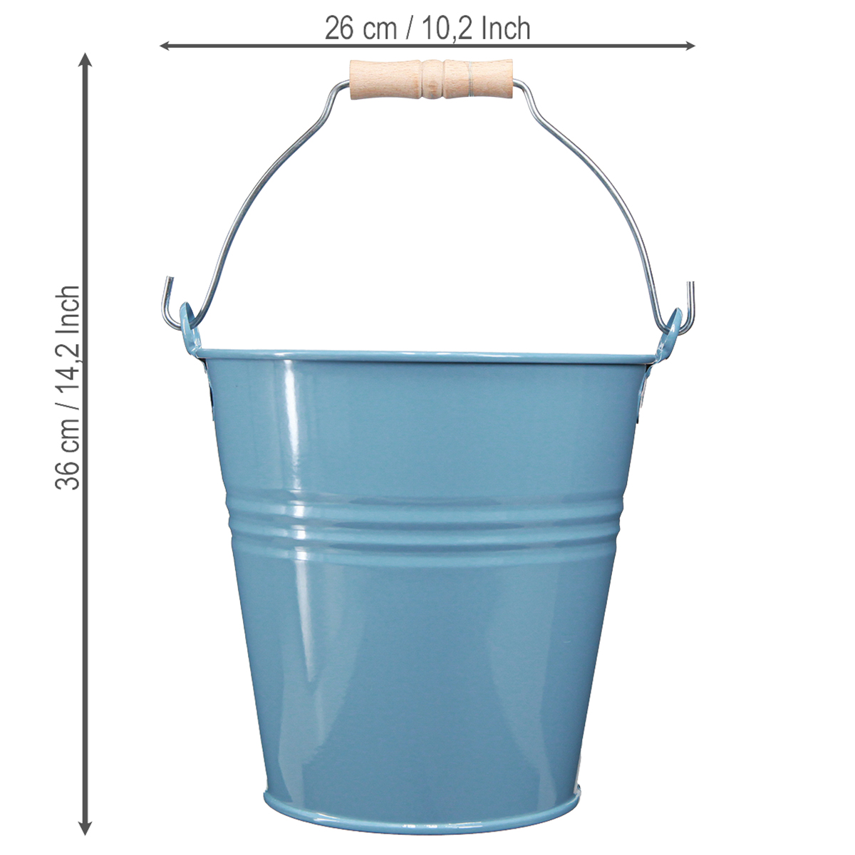 Scopri l'incantevole secchiello decorativo in blu senza tempo. Come vaso per piante in metallo colpisce per la sua elegante leggerezza e la sua robustezza. Dotata di manico in legno, unisce la funzionalità all'appeal decorativo, ideale per la decorazione di interni ed esterni.