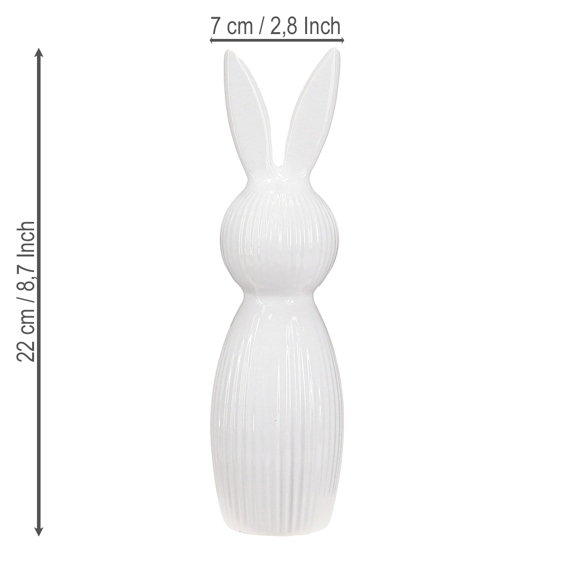 Primavera in soggiorno, sulla credenza o sul telaio della finestra: nessun problema con questa graziosa statuetta a forma di coniglio. Questa statuetta dal design semplice, alta 22 cm, è disponibile in un set da due e offre un perfetto mix di eleganza moderna ed estetica sobria. Con la sua superficie bianca lucida e la delicata texture scanalata, ha un aspetto sofisticato ma discreto. Cerchi un arredamento primaverile che si adatti perfettamente a stili di arredamento moderni come il minimalismo scandinavo o il design contemporaneo? Allora dai un'occhiata più da vicino a questa statuetta in ceramica a forma di coniglio. Si adatta perfettamente al tuo stile, soprattutto se abbinata a freschi bouquet verdi e bianchi o a composizioni primaverili di uova decorative. Ti sembra allettante? Ordinala subito e rendi la tua casa un vero e proprio colpo d'occhio questa stagione!