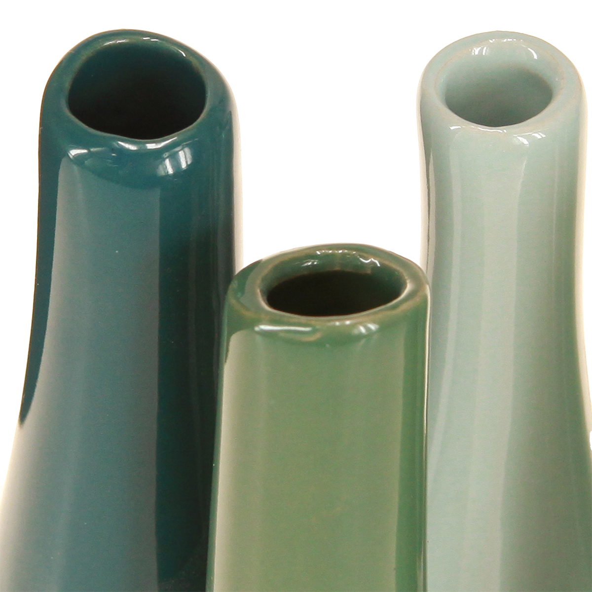 Le tonalità verdi di questi vasi di design si armonizzano magnificamente con materiali naturali come il legno o con l'arredamento in stile scandinavo. Posizionateli sul piano di lavoro della cucina per un tocco di charme o decorate la mensola del bagno per un tocco fresco e vivace. Il set è perfetto anche come elemento decorativo su un comodino o una scrivania: perfetto per chi apprezza i dettagli di stile.