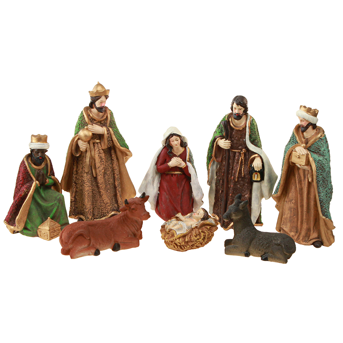 Set figure presepe natalizio in poliresina dipinta a mano 8-20 cm 8 pezzi