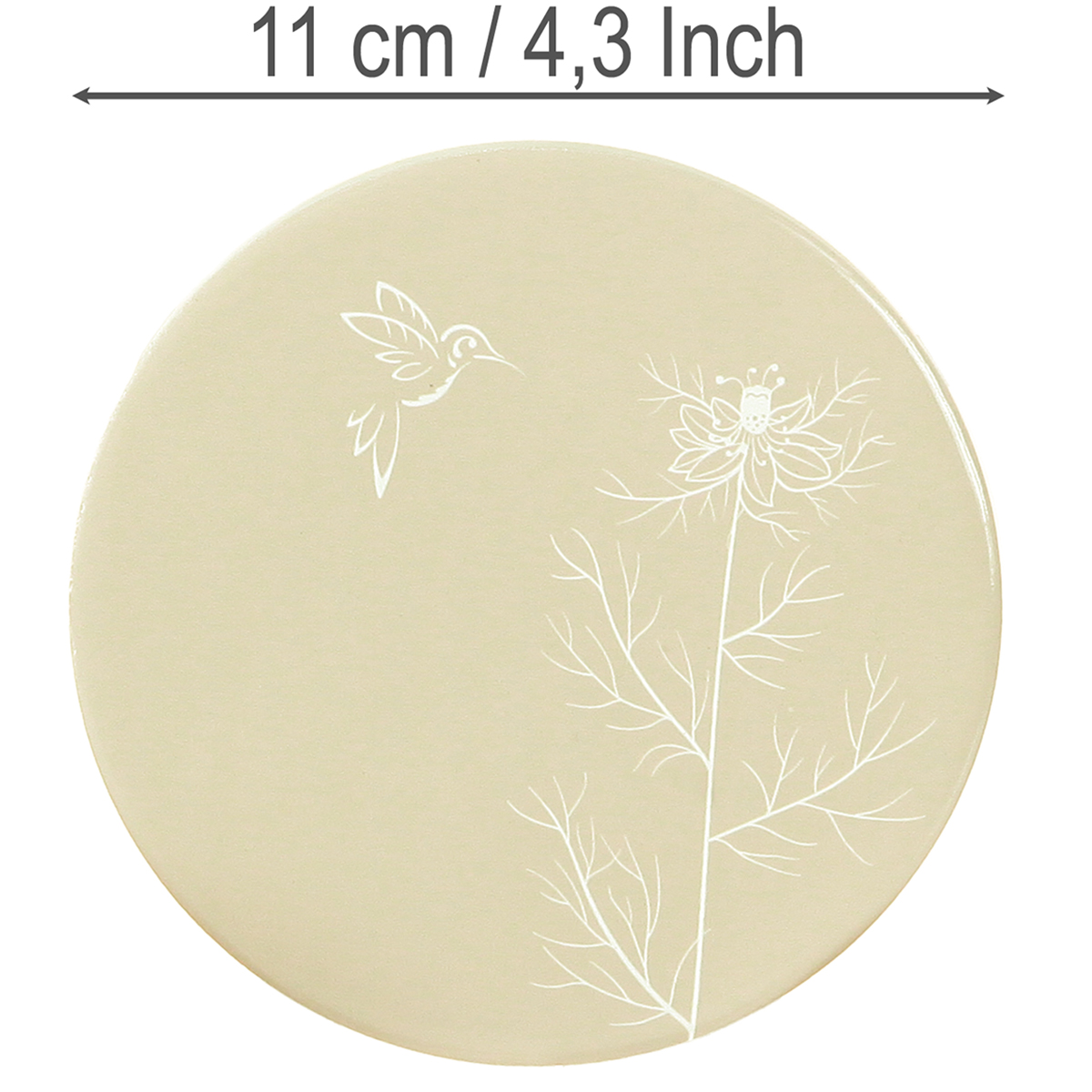 Il fiore raffigurato e l'uccello in volo incarnano la speranza, la libertà e i nuovi inizi nel linguaggio dei fiori: simboli perfetti per la primavera. L'uso del bianco simboleggia la purezza e i nuovi inizi, mentre i toni terrosi del beige e del marrone trasmettono stabilità e sicurezza. Questa combinazione di colori e simboli rende i sottobicchieri un elemento decorativo e significativo al tempo stesso.