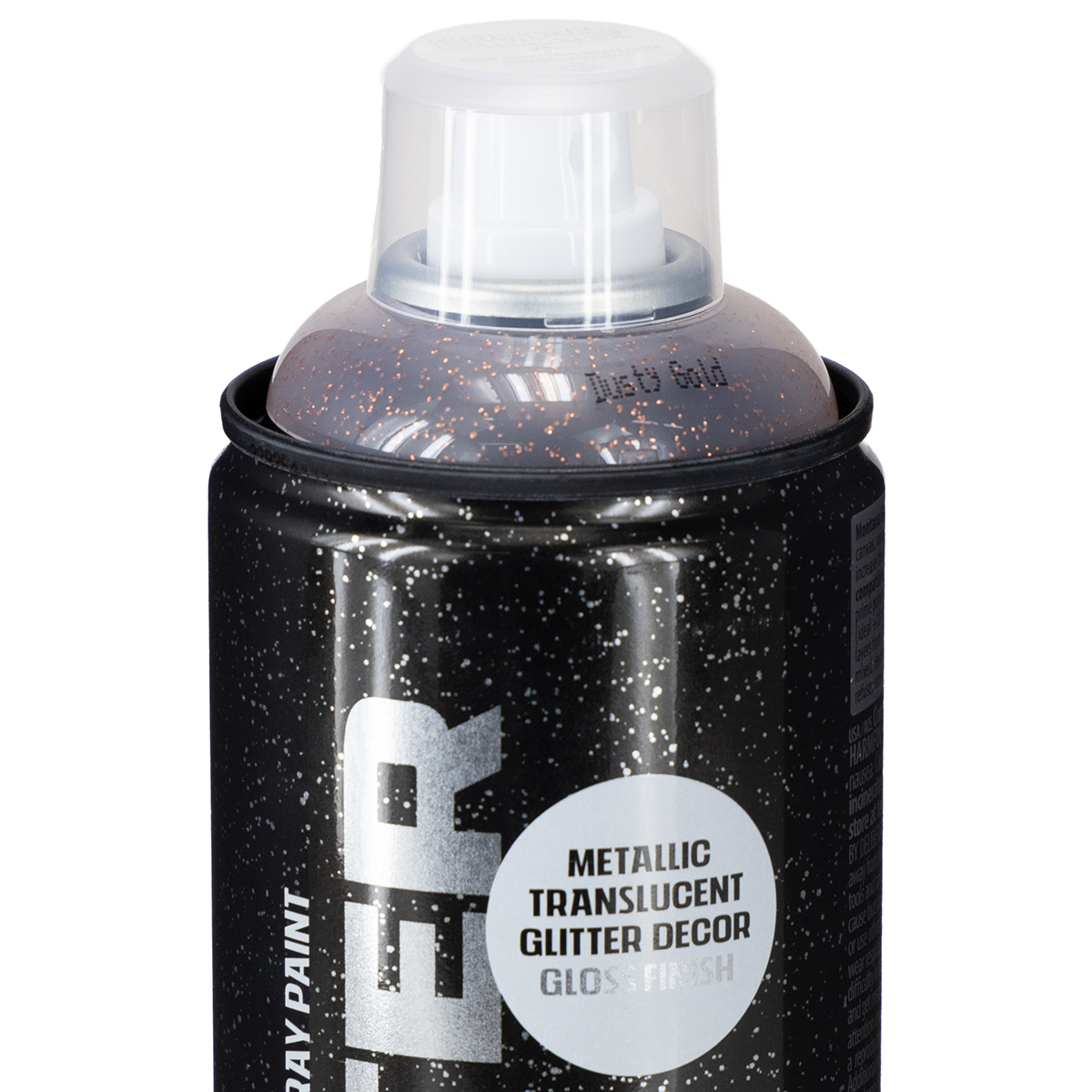 La tonalità Dusty Gold, un'entusiasmante nuance di oro rosa, è ideale per chi preferisce un look lussuoso ma insolito. Lo spray glitterato trasparente, grazie ai suoi pigmenti, crea una brillantezza metallica, lasciando visibile il colore sottostante: la finitura perfetta per i tuoi progetti creativi.