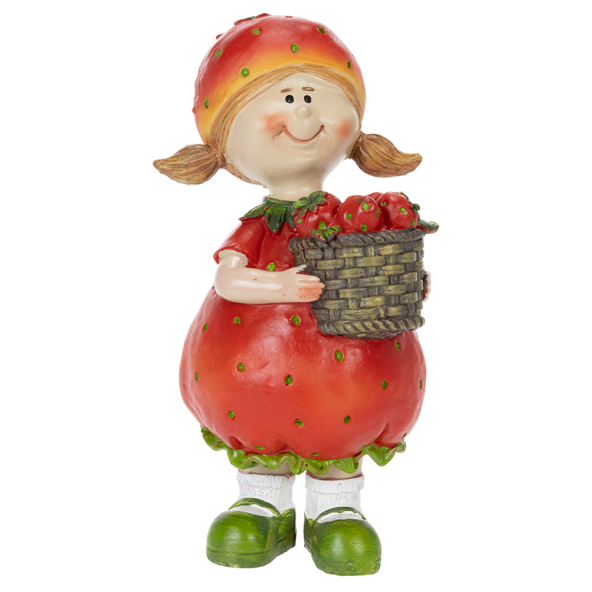Statuetta decorativa "Ragazza Fragola" per decorazioni estive, graziosa statuetta per soggiorno e balcone, 18 cm