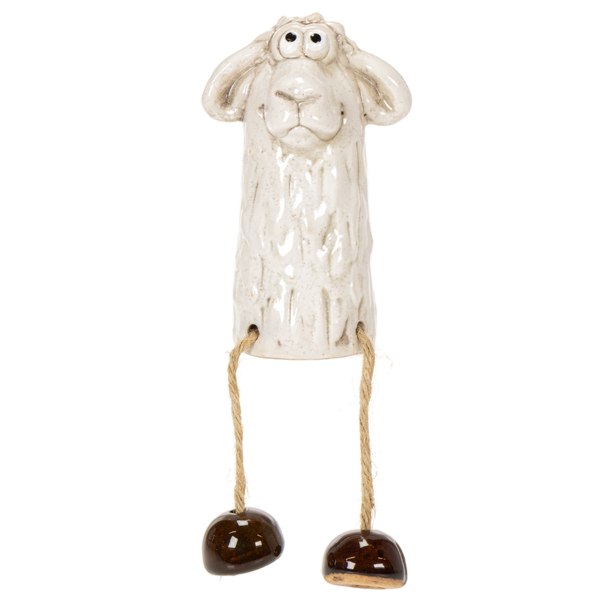 Cercate un piccolo oggetto decorativo che porti fascino e intimità nei vostri ambienti? Allora questa statuetta in ceramica a forma di pecora è proprio quello che fa per voi! Con la sua graziosa posa seduta e il design curato nei minimi dettagli, è un elemento di spicco non solo a Pasqua, ma durante tutto l'anno. Che sia sistemata sul tavolo, sul davanzale della finestra o anche come elemento decorativo sul balcone, questa statuetta non passerà inosservata. La calda tonalità bianca, abbinata alle gambe pendenti in corda e ai piedini marroni, conferisce alla statuetta in ceramica un fascino giocoso ma senza tempo. Perfetta per interni in stile country o scandinavo. Volete creare una combinazione magica? Provatela con materiali naturali come legno o muschio come base. Lasciate fluire la vostra creatività!