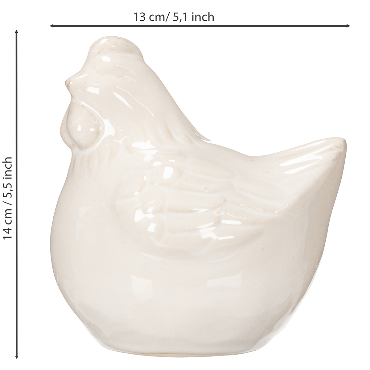 Questo set di gallo e gallina è la scelta perfetta per chi apprezza l'artigianato di alta qualità e il design moderno. Realizzate in ceramica di alta qualità e rifinite con una smaltatura bianca lucida, le statuette emanano eleganza e stile contemporaneo. Con una lunghezza di 17 cm, una larghezza di 13 cm e un'altezza di 16 cm, sono abbastanza grandi da fungere da centrotavola di grande effetto, ma abbastanza discrete da integrarsi perfettamente in qualsiasi arredamento. Il loro intramontabile colore bianco le rende perfette per ogni occasione, che la vostra casa sia arredata in stile scandinavo, minimalista-moderno o contemporaneo. Questa statuetta di gallina smaltata offre numerose possibilità decorative. Brilla davvero se abbinata ad altri materiali naturali come il legno o i fiori secchi. Potete usarle per adornare splendidamente una tavola pasquale festiva o disporle tutto l'anno su mensole o consolle come un tocco discreto. Per un tocco di intimità in più, potete persino posizionarle in un piccolo e invitante angolo lettura. Sono i piccoli dettagli, come queste statuette luccicanti, che rendono una stanza una casa.