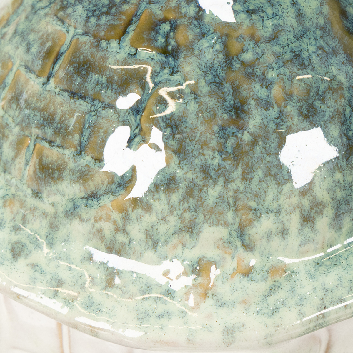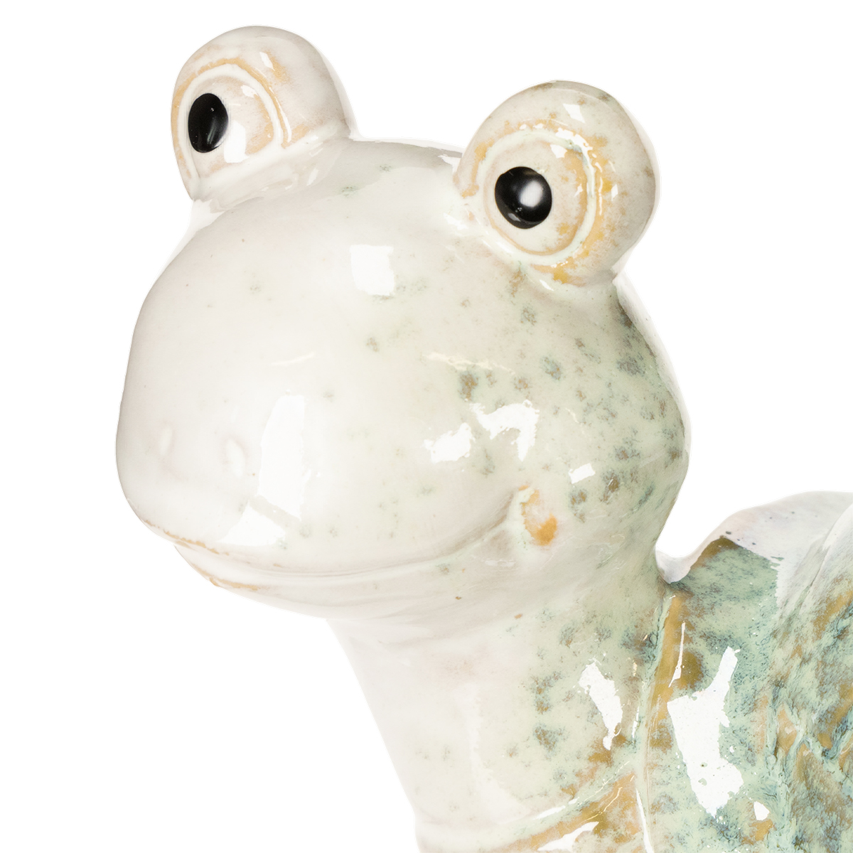 Questa tartaruga in ceramica, realizzata con cura, non solo dona un tocco di freschezza alla vostra casa, ma colpisce anche per la sua lavorazione di alta qualità e il suo aspetto unico. Il guscio brilla di un verde tenue con una sfumatura naturale, mentre il corpo è di un'elegante tonalità crema. I dettagli estetici conferiscono un tocco fresco e armonioso a qualsiasi ambiente. La statuetta è ideale per decorare una mensola del soggiorno o un tavolo da giardino. È semplicemente incantevole anche su un balcone o abbinata a composizioni floreali in un ingresso. Grazie al suo design senza tempo, si abbina perfettamente a stili nautici, moderni o rustici. La tartaruga in ceramica non è resistente al gelo, ma è perfetta per l'uso in una veranda o in interni. Mettete in risalto la tartaruga con vasi, vasi o altre statuette decorative dai colori coordinati: il risultato sarà impeccabile!
