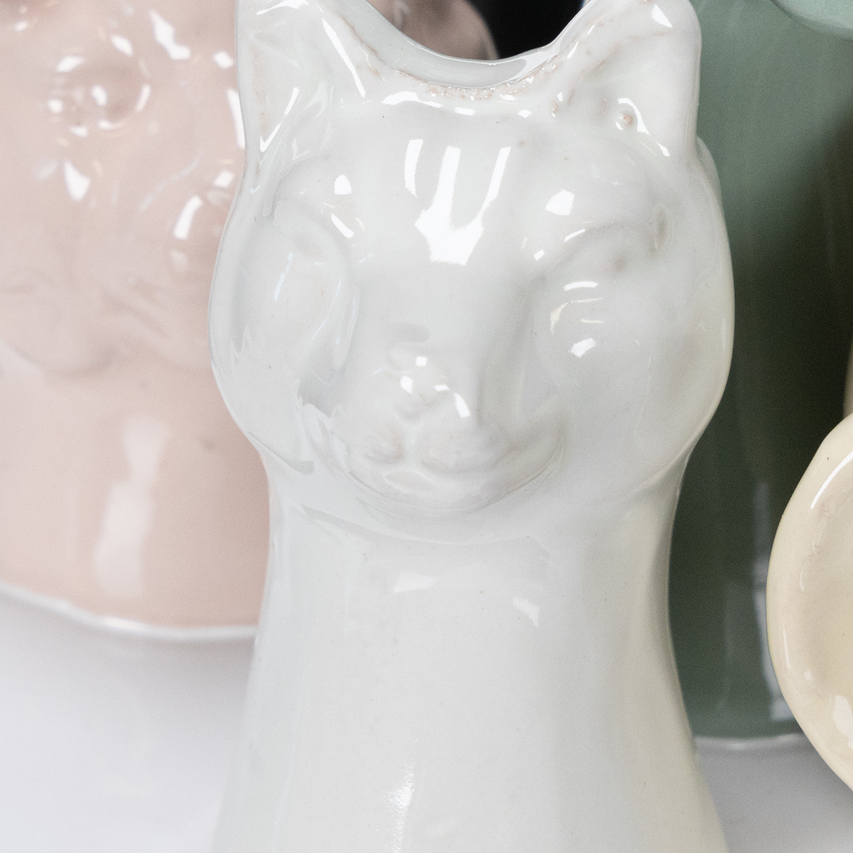 Amore a prima vista! Chi può resistere a questi graziosi vasi a forma di animali? Che si tratti di un elefante, un maiale, una capra, una giraffa o dei loro amici animali, ognuno di loro vi farà battere il cuore. Con questo incantevole set, non porterete a casa solo originali figure decorative, ma anche capolavori in ceramica in miniatura che delizieranno grandi e piccini. Perfettamente disposte su una base stabile, queste figure si inseriscono perfettamente in qualsiasi spazio abitativo. Avete una cameretta che ha bisogno di un tocco di allegria? O desiderate infondere nel vostro soggiorno una giocosa atmosfera estiva? Allora questi vasi sono la scelta perfetta. Il gioco di colori – bianco, rosa e giallo – combinato con una palette cromatica armoniosa evoca leggerezza e freschezza in ogni stanza. Date a ogni vaso un posto nella vostra casa e scoprite la sua versatilità: una delicata composizione floreale, un mazzo di lavanda essiccata o semplicemente minimalisti e naturali: questi vasi sono tanto diversi quanto le vostre idee di interior design.