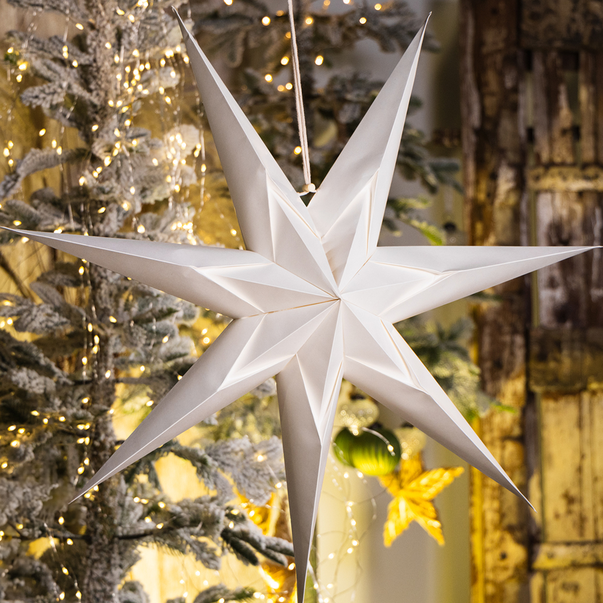 Stella di carta color bianco crema: un elemento decorativo festoso da appendere e illuminare