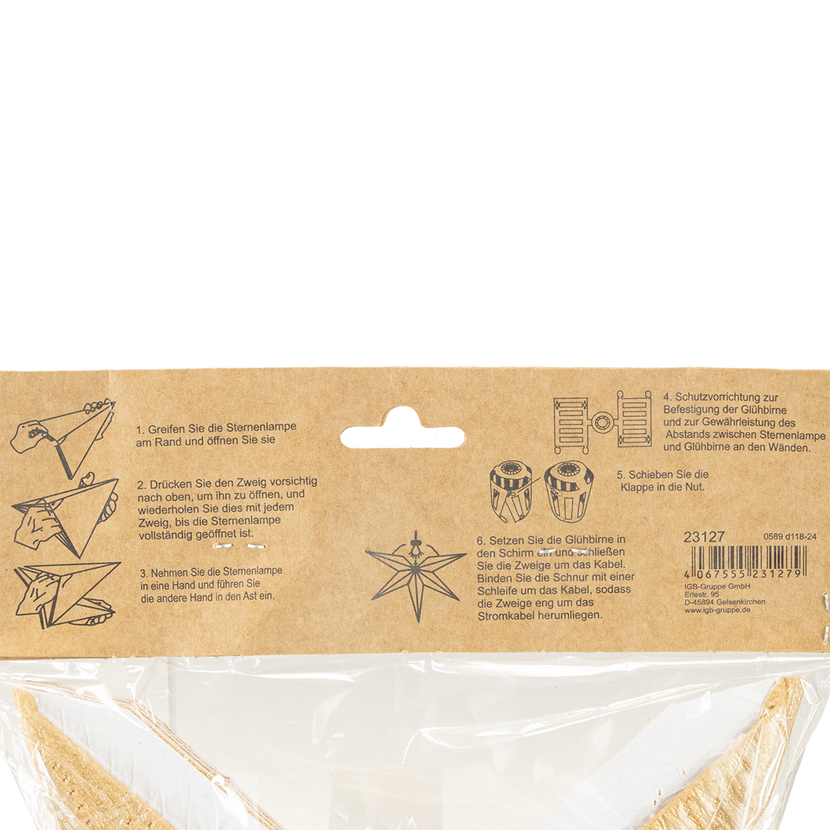 Nome del prodotto: Stella di carta dorata per illuminare, stella di Natale in carta Ø60cm