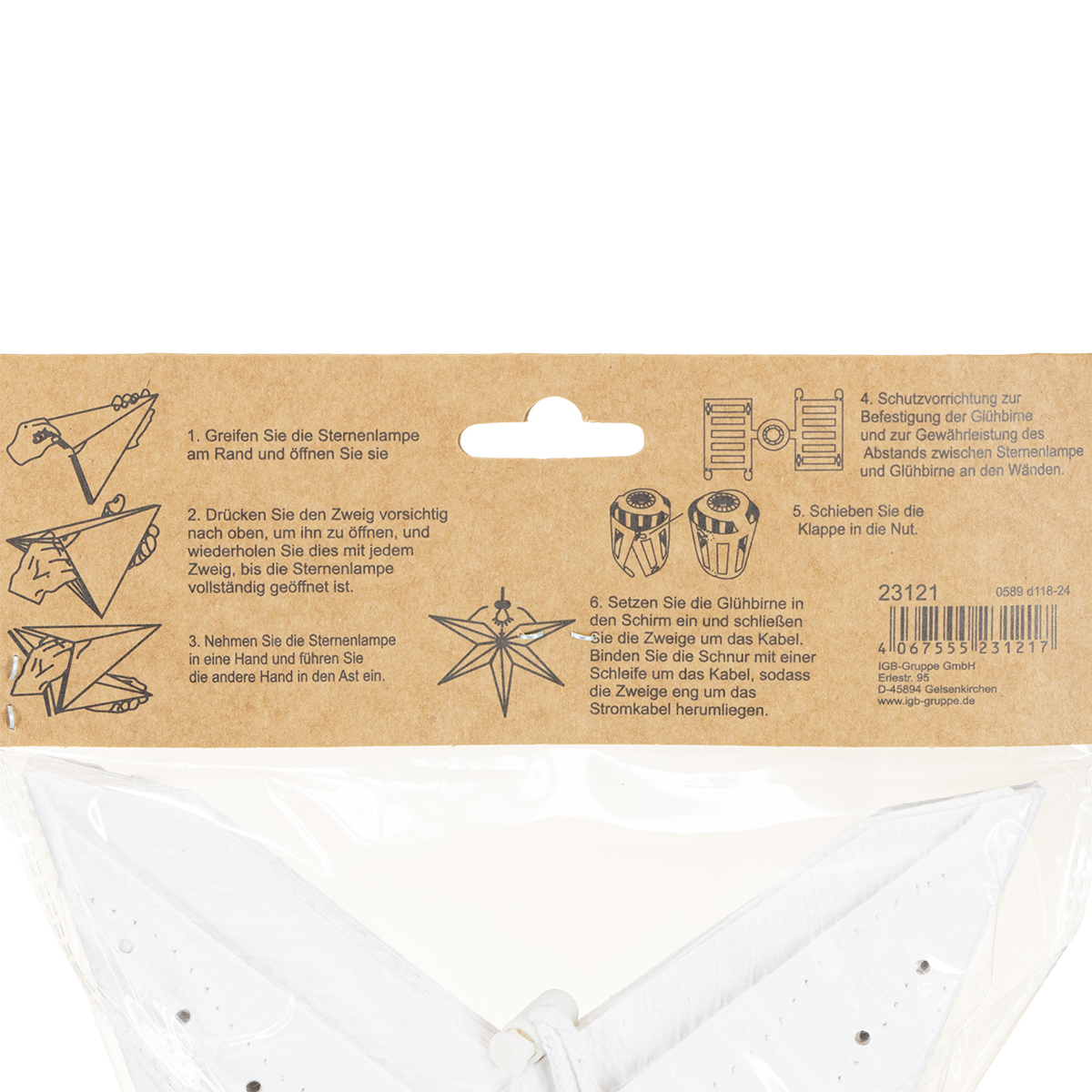 Nome del prodotto: Stelle di carta per luci di Natale, bianche, 45 cm, 3 pezzi