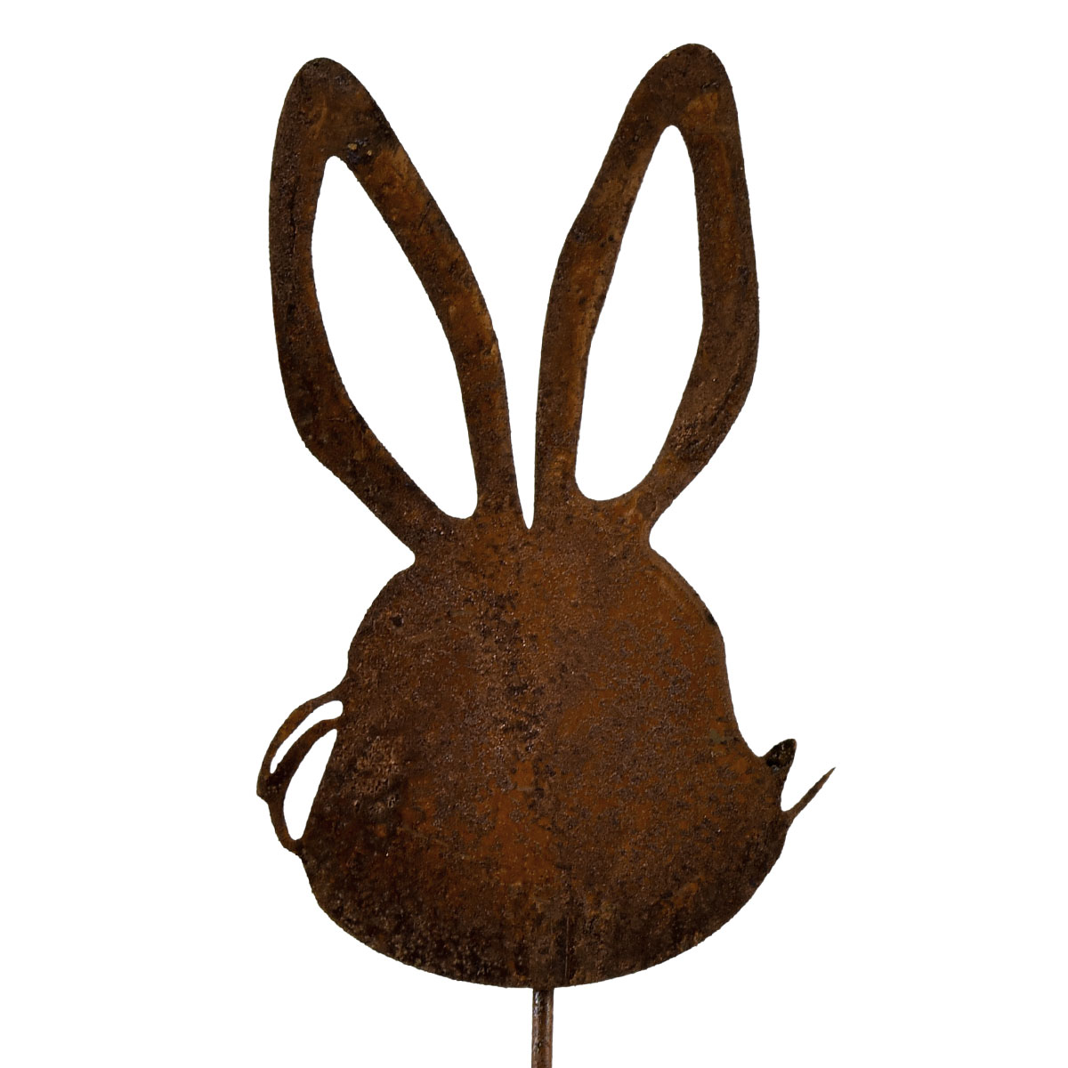 La decorazione pasquale in patina si presenta come una testa di coniglio. Oltre alle lunghe orecchie, particolarmente originali sono gli incavi laterali sulla decorazione in metallo che ricordano i simpatici baffi dei conigli. Le orecchie stanno dritte, come se fosse un coniglio molto curioso.