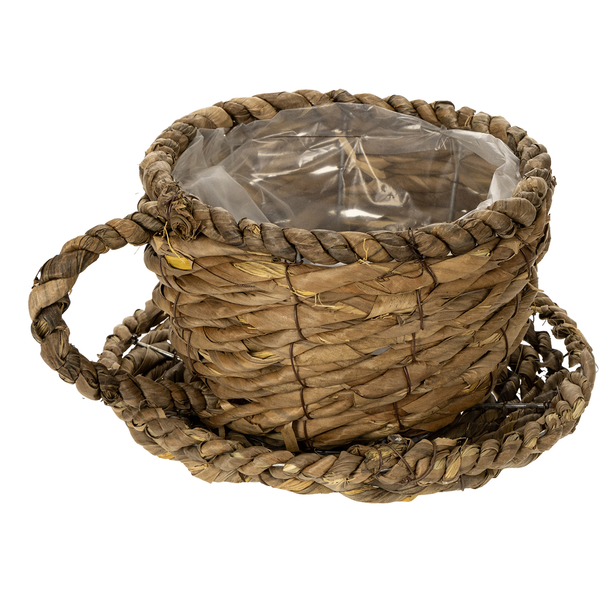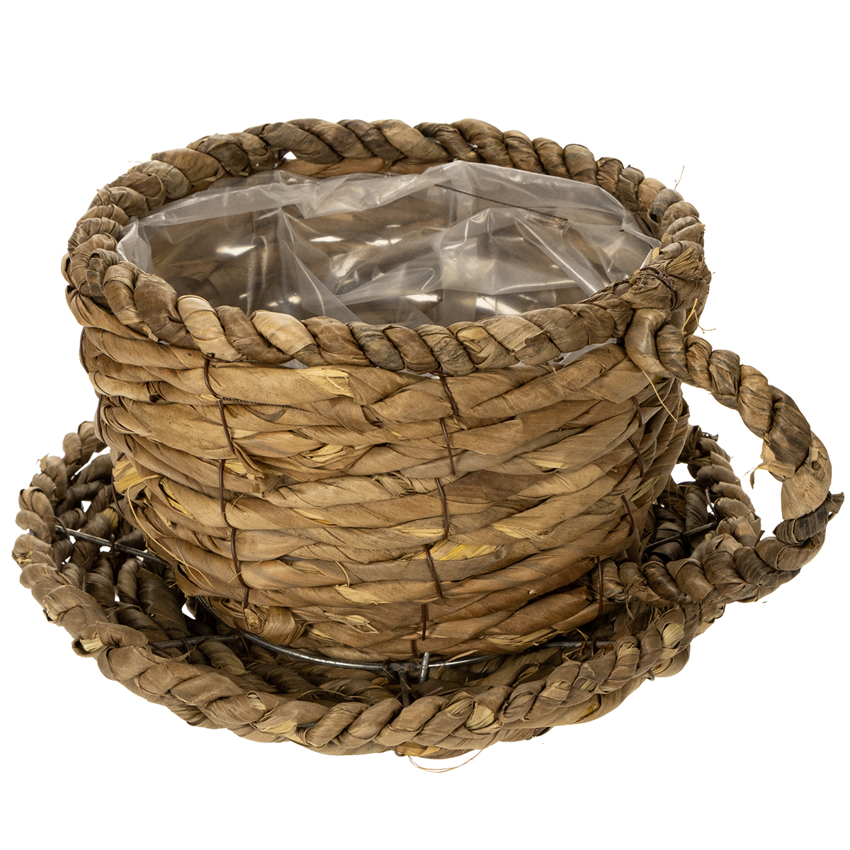 Tazza da piantare con piattino, piccolo cestino da piantare in paglia, Ø17cm H13cm