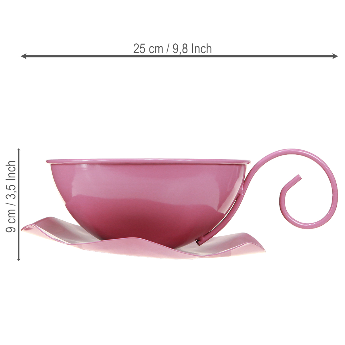 Tazza in metallo Ø16cm H9cm Tazza decorativa con piattino Rosa 2 pezzi