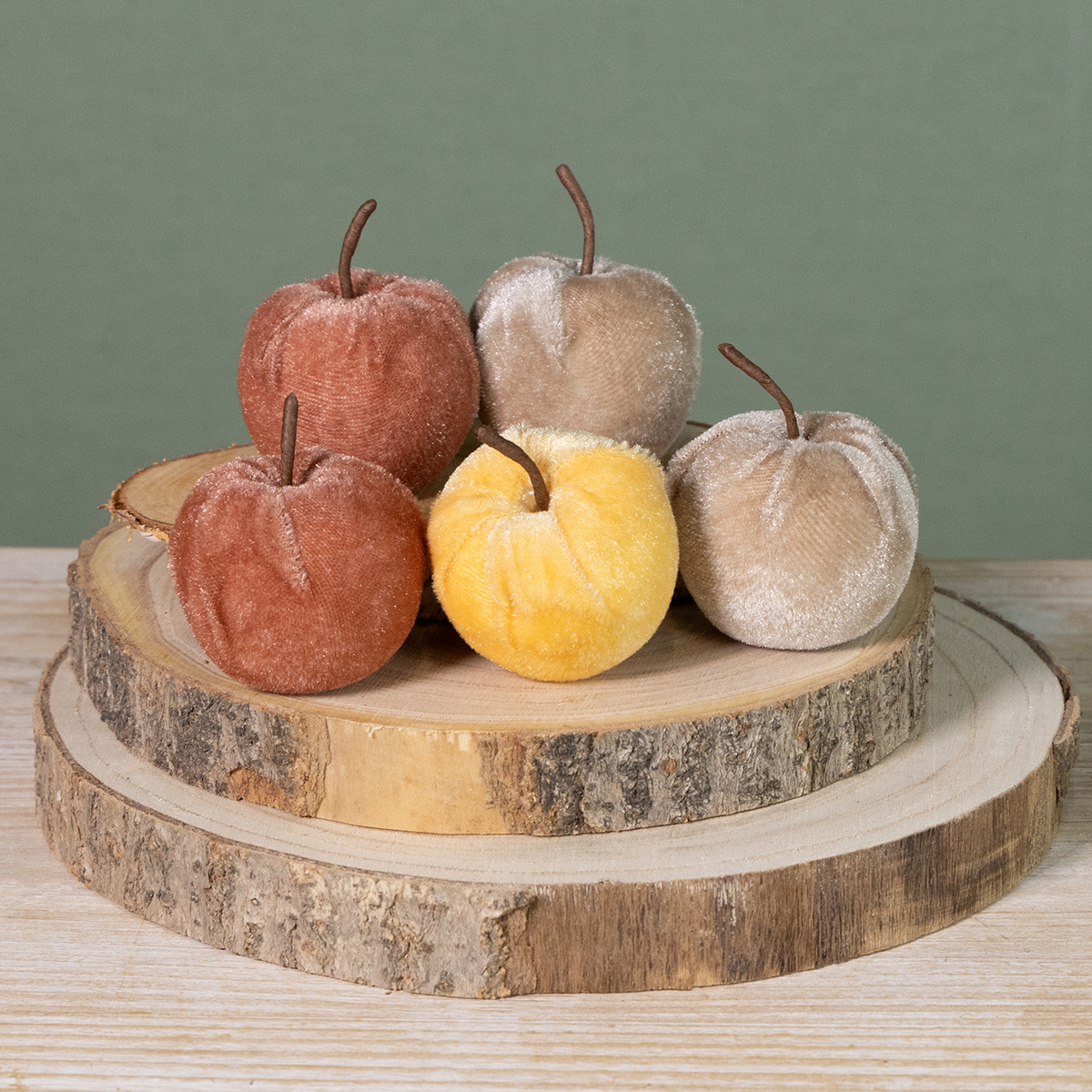 Tessuto decorativo mele mela velluto marrone giallo Ø5cm H6cm 12 pezzi