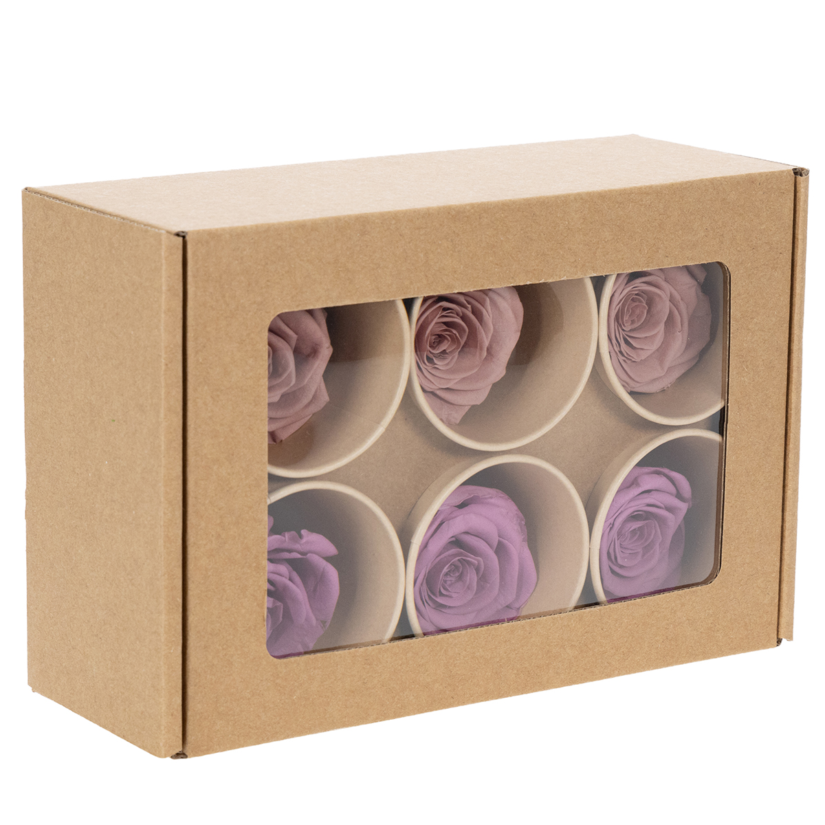 Le nostre rose stabilizzate in un elegante lilla sono delle vere e proprie tuttofare e la compagna perfetta per i momenti speciali. Riceverai sei splendide rose, ciascuna di 4 cm di diametro e 5 cm di altezza. Lo speciale processo di conservazione garantisce che le rose mantengano la loro forma, il loro colore e la loro bellezza naturali senza alcuna manutenzione. Nessuna annaffiatura, nessun appassimento: queste rose sono fatte per durare per sempre. Mettile come elegante centrotavola sul tavolo delle tue nozze, usale per progetti creativi o regalale come romantico regalo di anniversario. La calda tonalità lilla emana una magica tranquillità e si abbina splendidamente a decorazioni moderne o accenti in stile vintage.