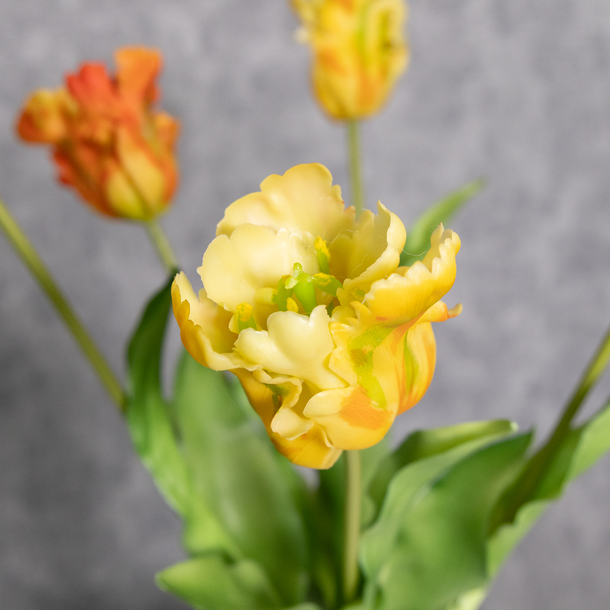 Che ne dite di trasformare il vostro soggiorno in un giardino primaverile in fiore, senza bisogno di alcuna manutenzione? I nostri tulipani artificiali di alta qualità in un vivace arancione sono perfetti per questo! Che si tratti di un suggestivo centrotavola per la colazione con gli amici o di un tocco di stile su una cassettiera, questi tulipani decorativi donano freschezza ed eleganza a qualsiasi stanza. Sembrano così realistici che bisogna guardarli due volte per rendersi conto che non sono veri. E la parte migliore: non appassiscono, non necessitano di annaffiature e non sbiadiscono. Questi fiori artificiali si adattano a innumerevoli stili di interior design, dal moderno al rustico. La loro affascinante combinazione di arancione vivace e foglie delicate dall'aspetto naturale li rende non solo i preferiti in soggiorno, ma anche un'aggiunta versatile per occasioni speciali come matrimoni, feste di compleanno o decorazioni primaverili. Regalatevi un pezzo di primavera che non tramonta mai!