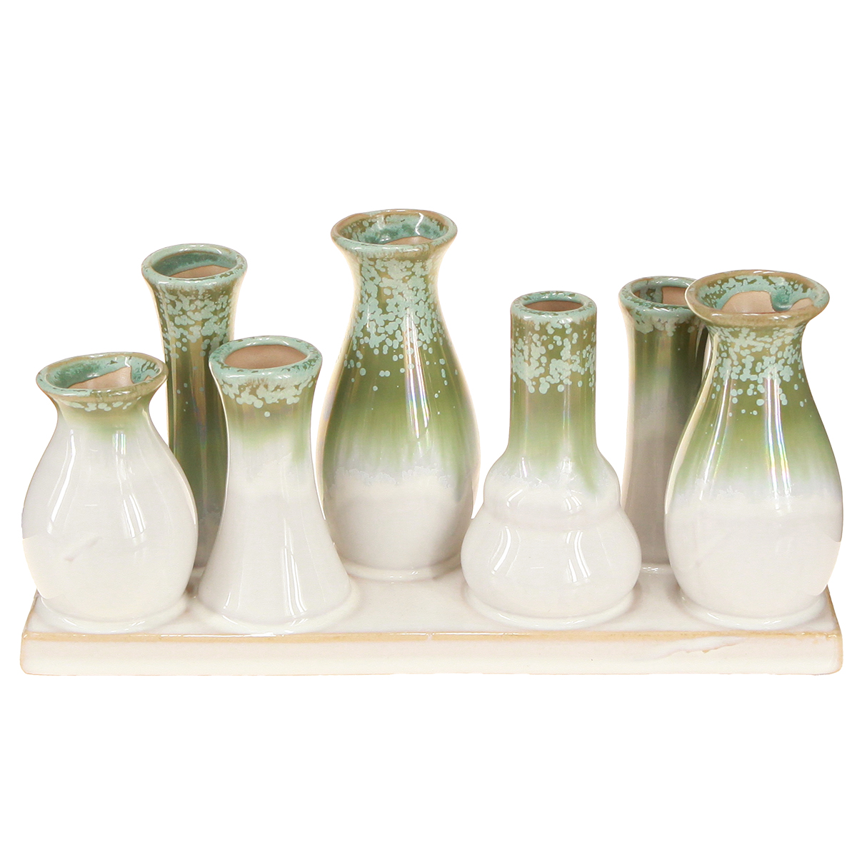 - Set di 7 vasi decorativi in ceramica su un vassoio robusto