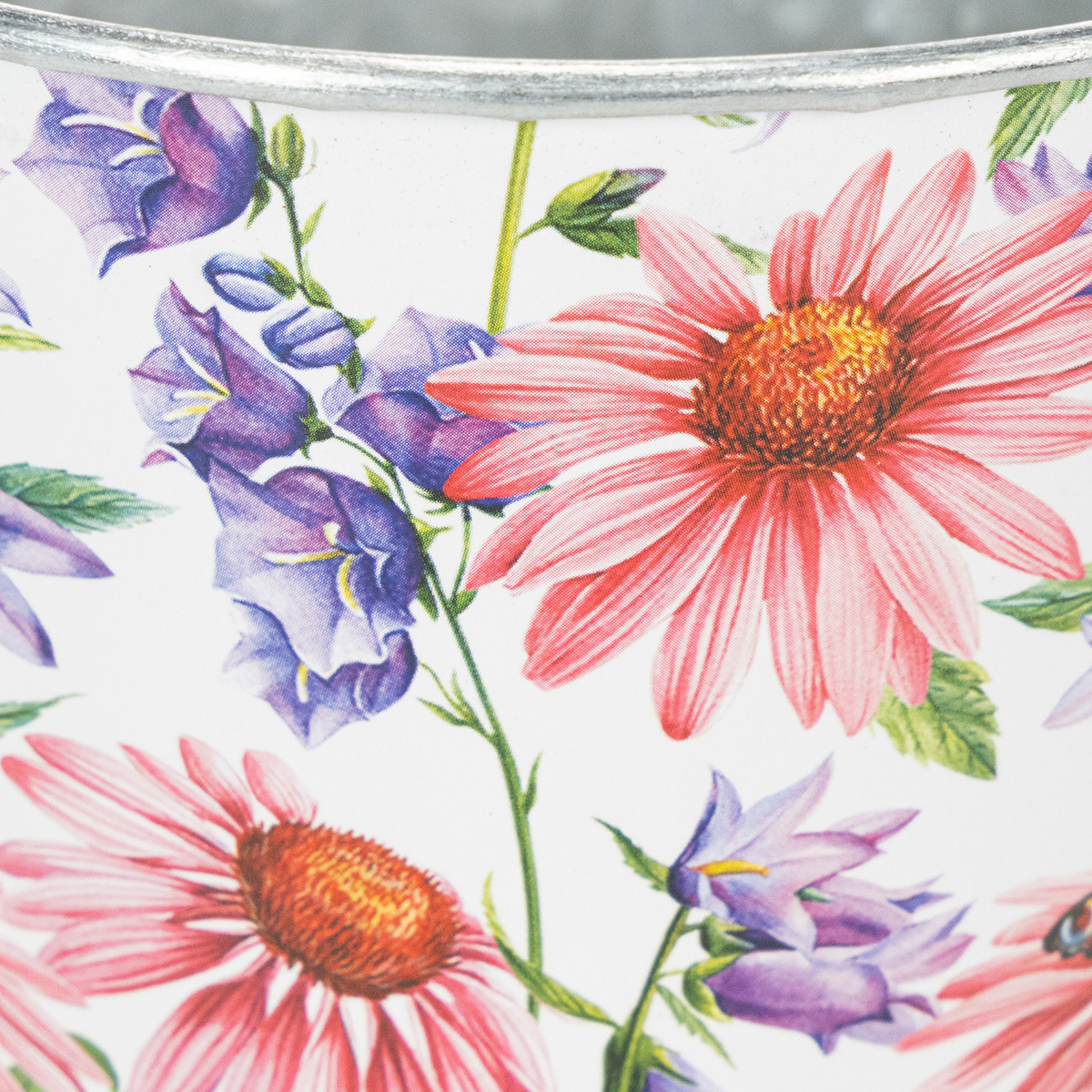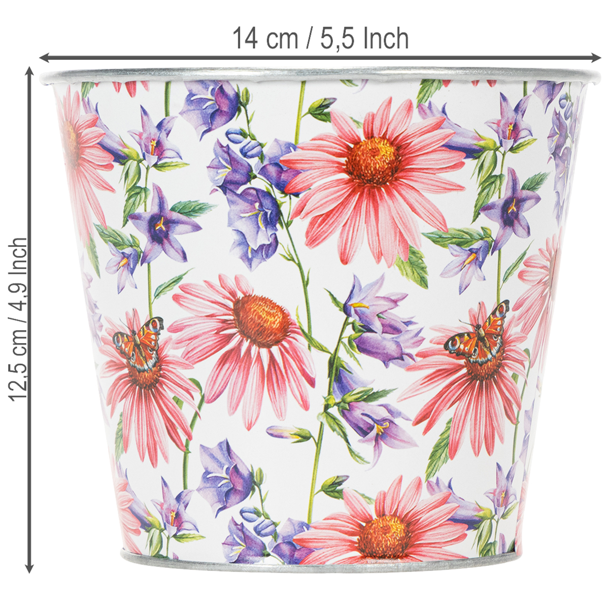 Mentre la stampa floreale è incollata in modo molto preciso all'esterno, l'interno del vaso e i bordi brillano nel bellissimo zinco color argento. Per la semina diretta nel vaso si consiglia una pellicola che protegga l'interno dall'umidità.