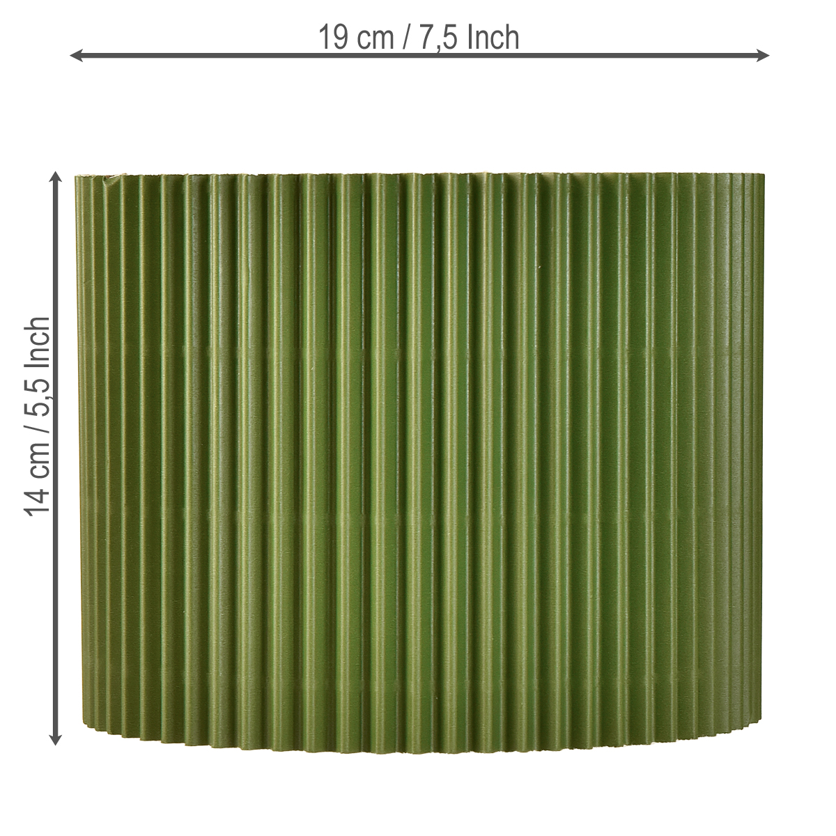 Questo elegante vaso di carta verde scuro aggiunge un tocco decorativo a qualsiasi stanza. Con un diametro di circa 19 cm e un'altezza di circa 14 cm, questo vaso è ideale per composizioni di piante di medie dimensioni. Il design moderno con l'esterno a coste gli conferisce una texture interessante. Questo rende il vaso ideale per soggiorni, uffici o come regalo creativo. Si prega di notare che il vaso deve essere rivestito con un foglio di alluminio prima di essere utilizzato con piante vive per proteggerlo dall'umidità. Il vaso è perfetto per composizioni decorative in casa o per esposizioni floreali e vetrine di negozi.