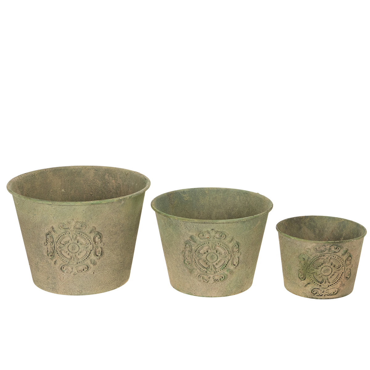 Vaso da fiori in metallo, verde, stile vintage, Ø22cm–13.5cm, set da 3