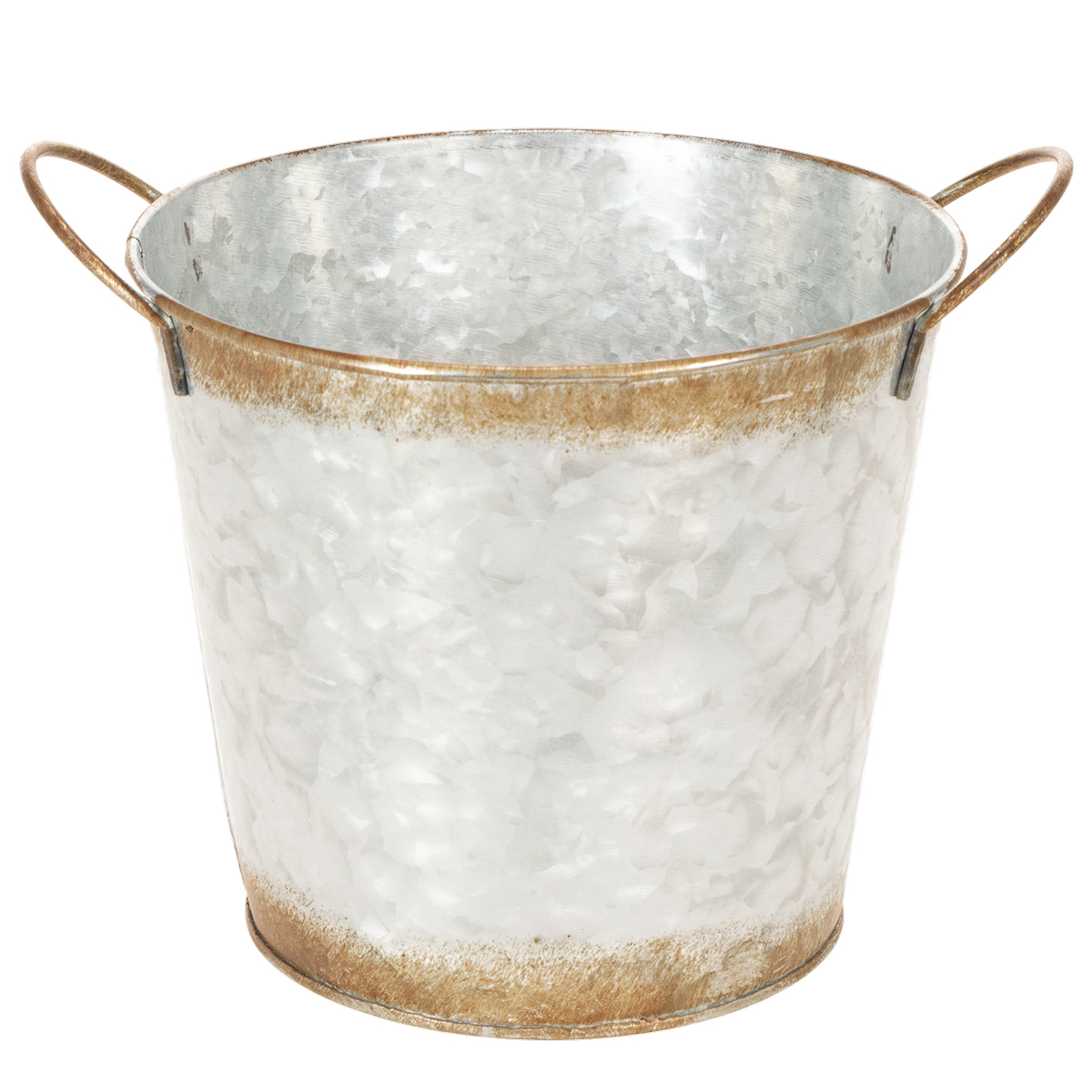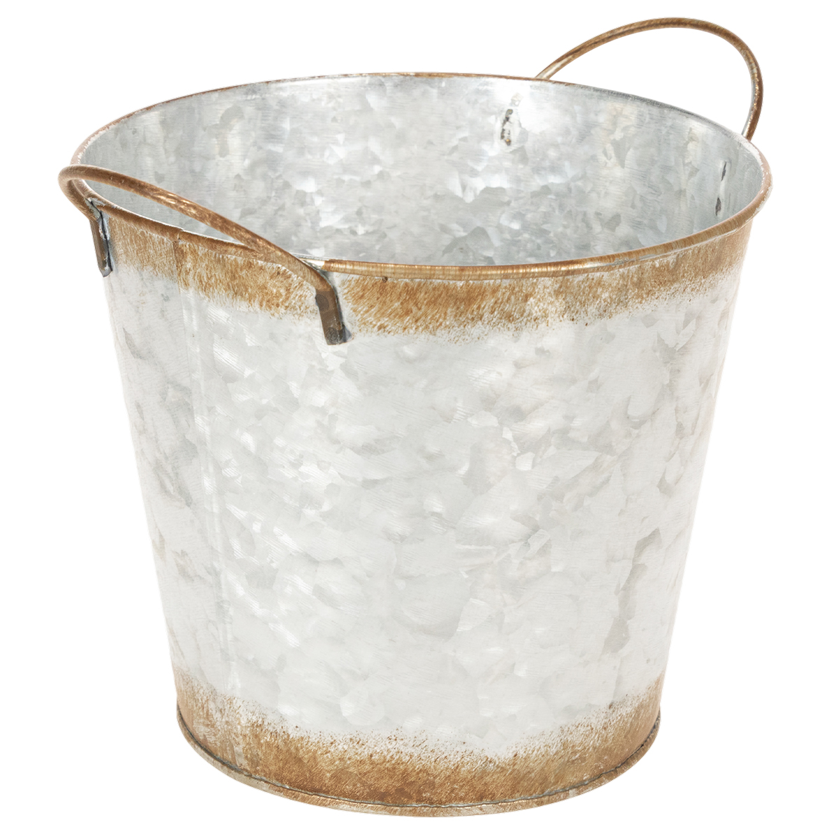 Vaso decorativo con manici, secchio per piante, contenitore in metallo, argento, acciaio anticato, Ø17cm H16.5cm