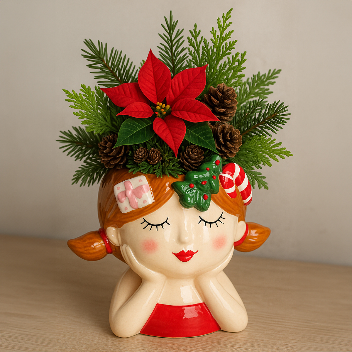 Vaso in ceramica raffigurante una bambina per Natale: giocoso e versatile