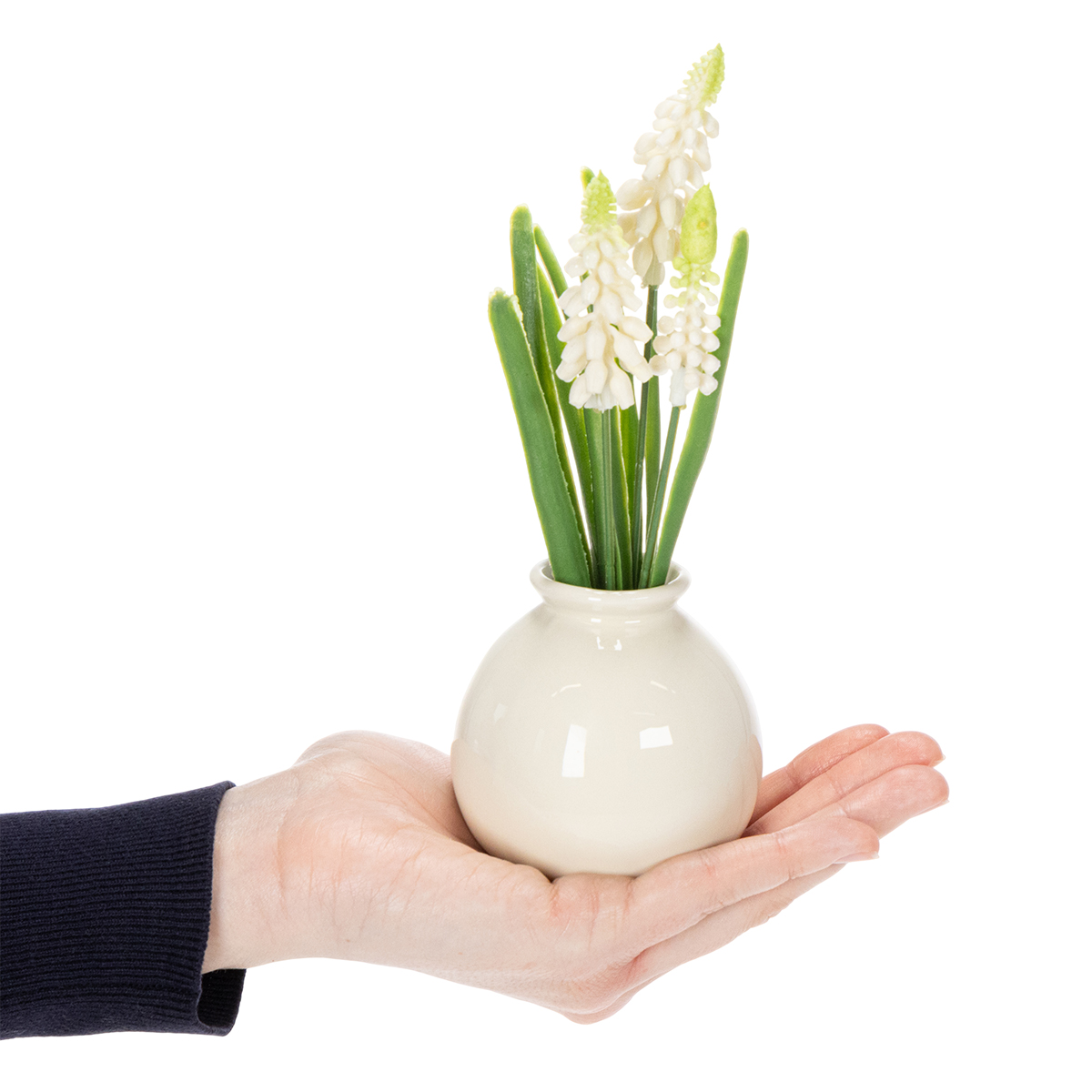 - Colore: Delicati fiori bianchi, vaso bianco crema