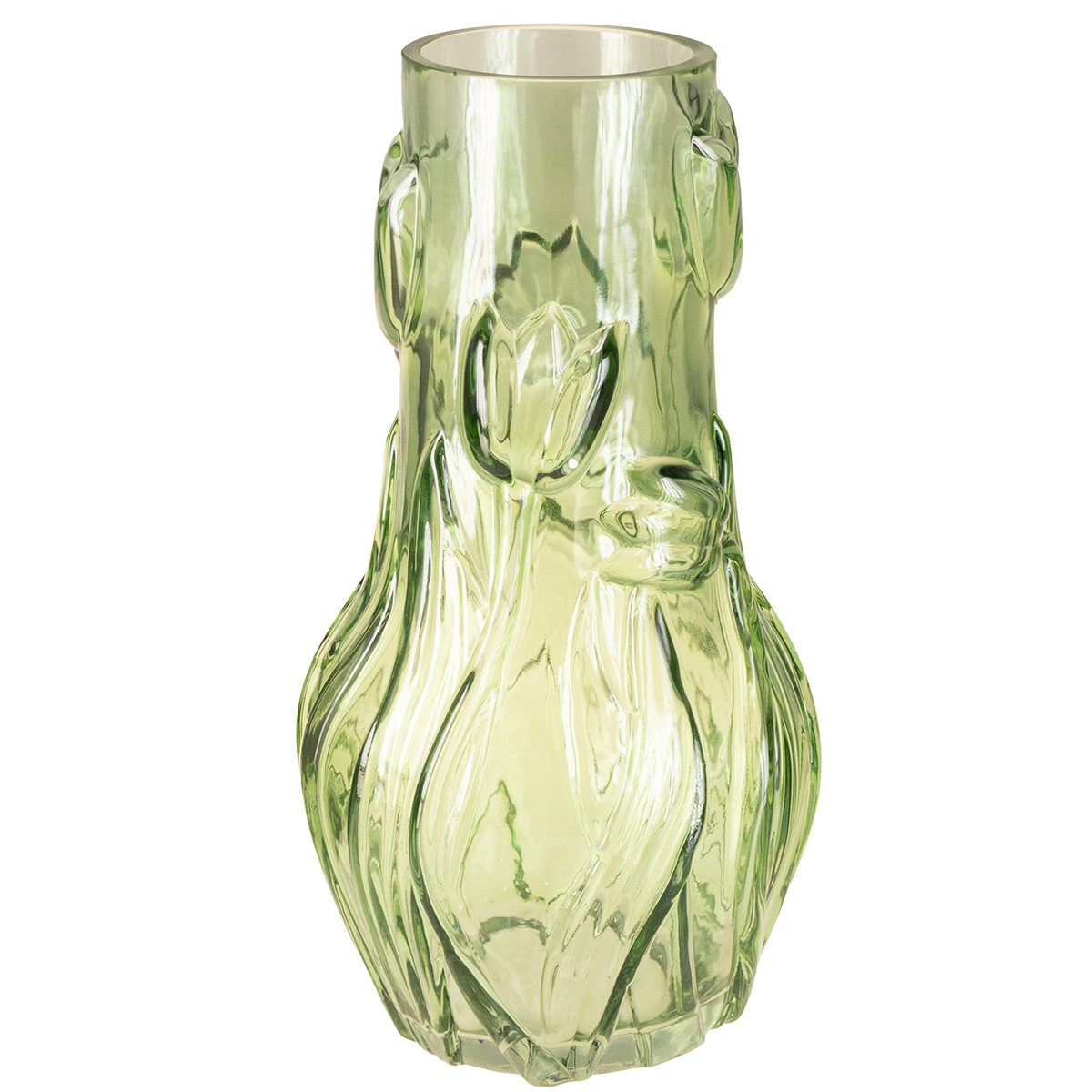 Vaso in vetro con motivo a tulipano in rilievo per un design armonioso della stanza, 30 cm