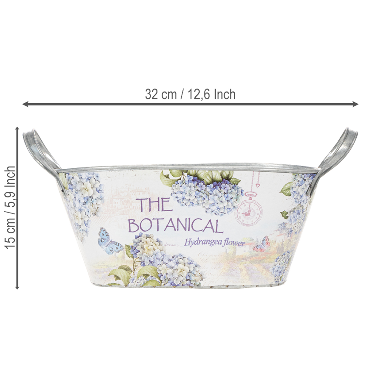 Vaso ovale in metallo con manici, per ortensie, 32×15×15 cm