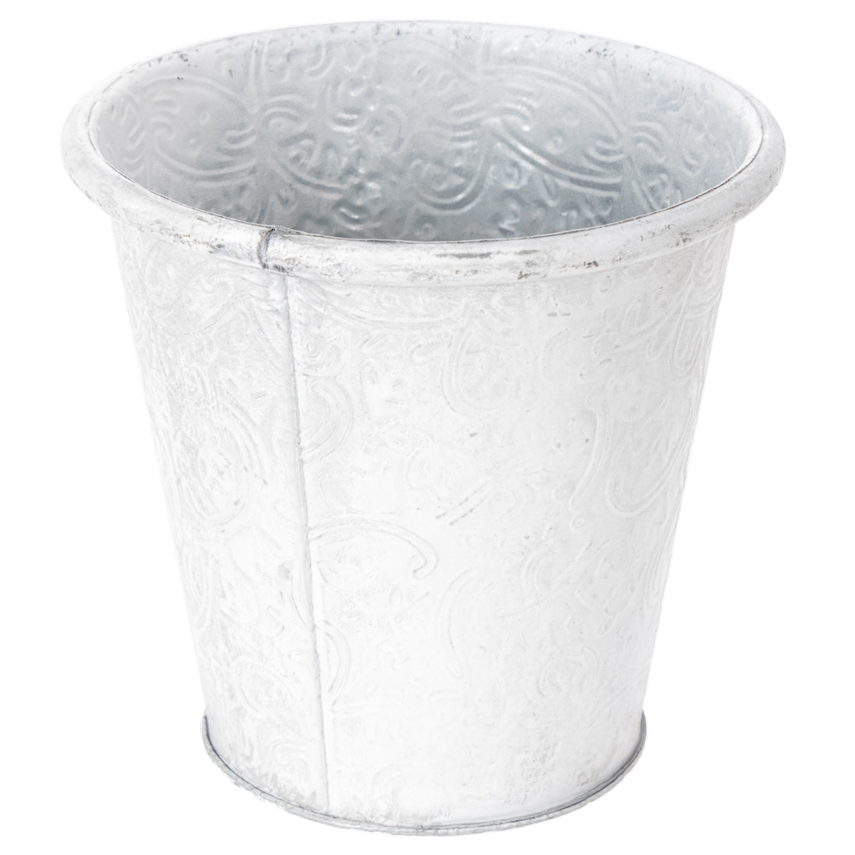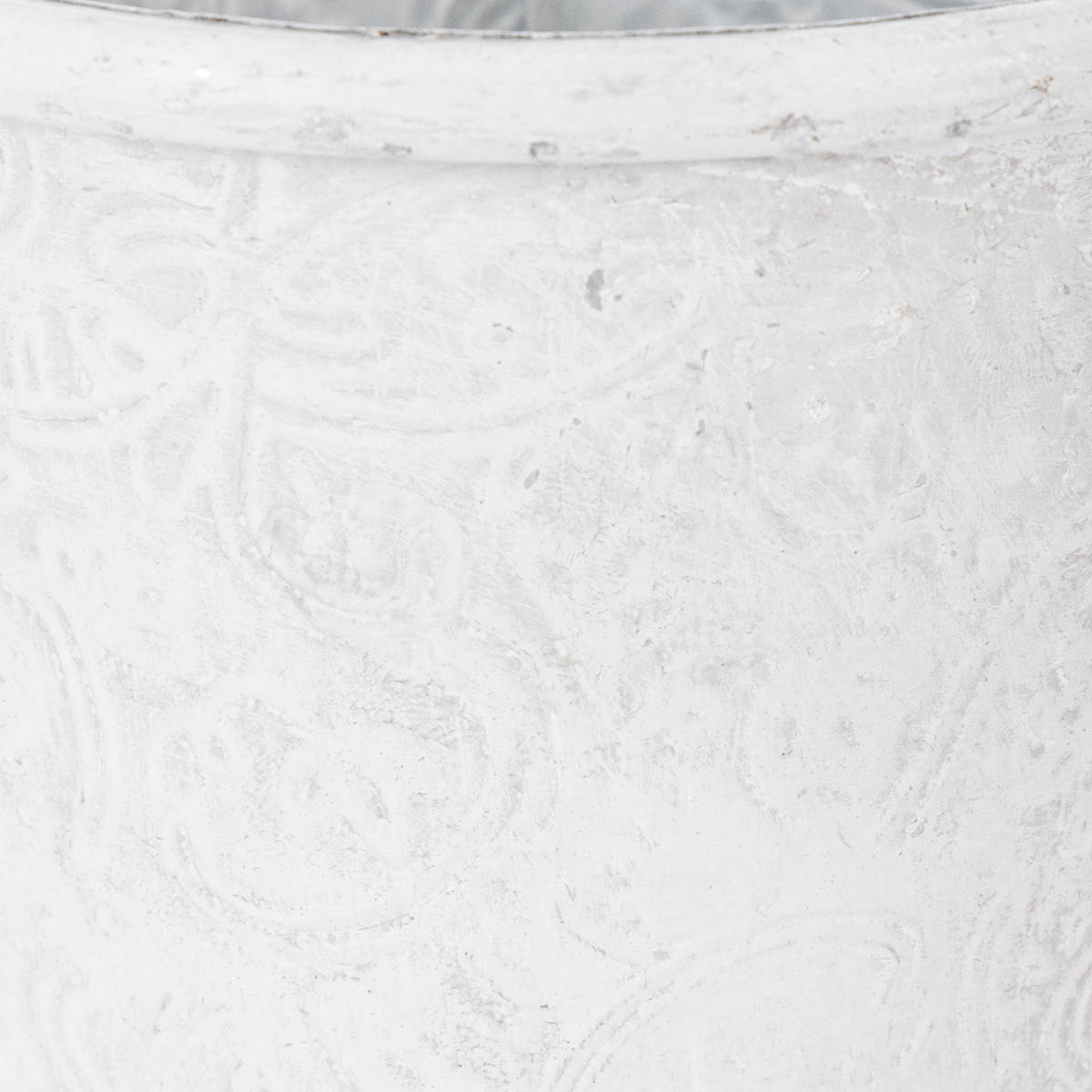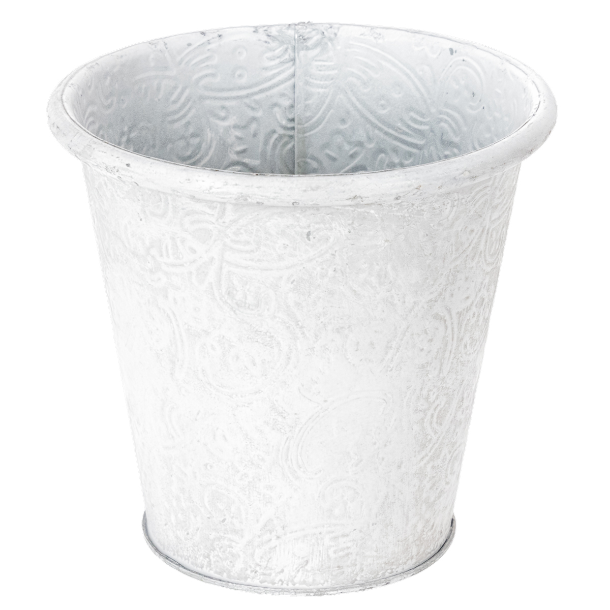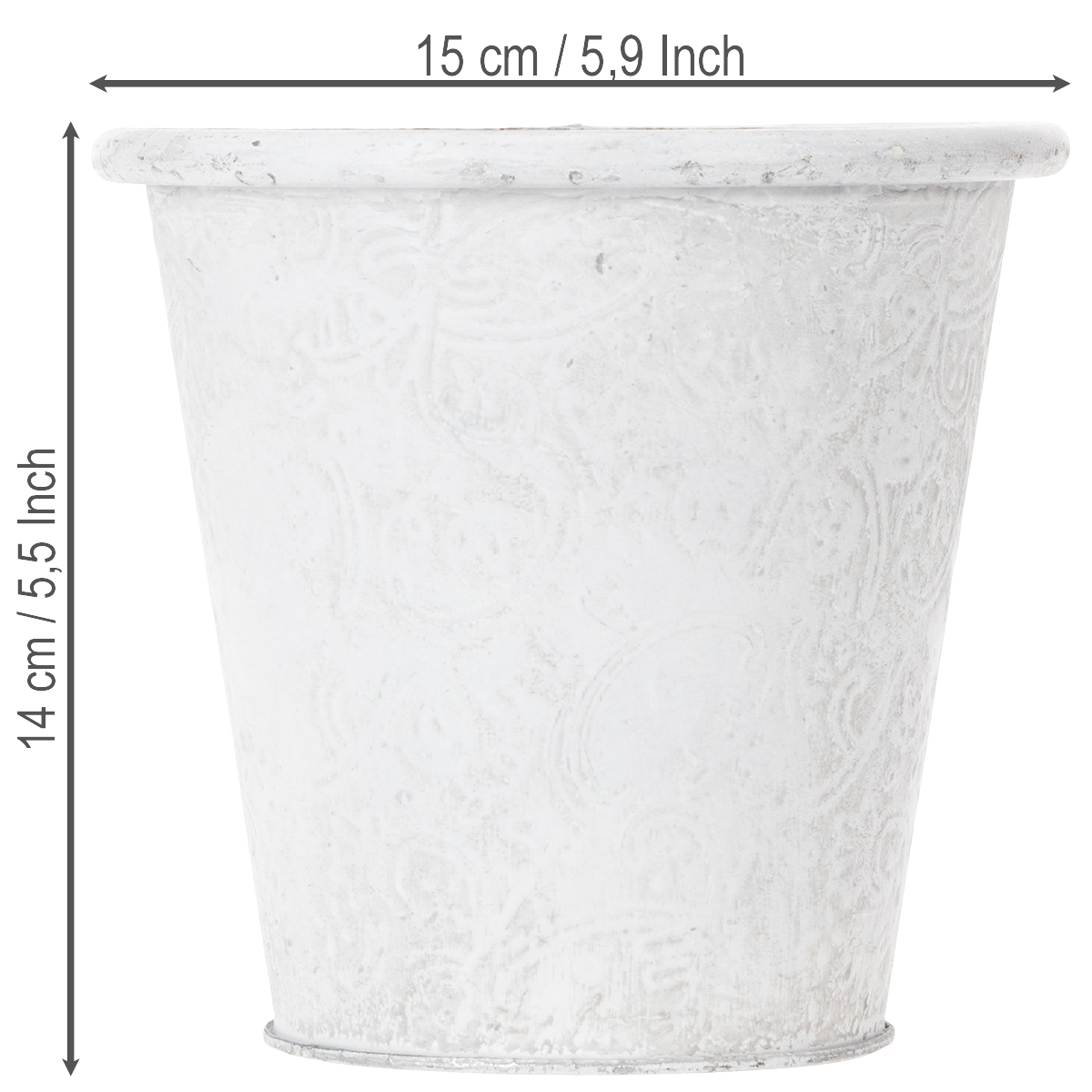 Vaso per piante con ornamenti, contenitore in metallo, bianco, Ø15,5cm, H14,5cm
