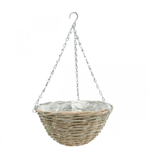 Vaso per piante da appendere, cesto appeso intrecciato naturale, bianco lavato H15cm Ø30cm