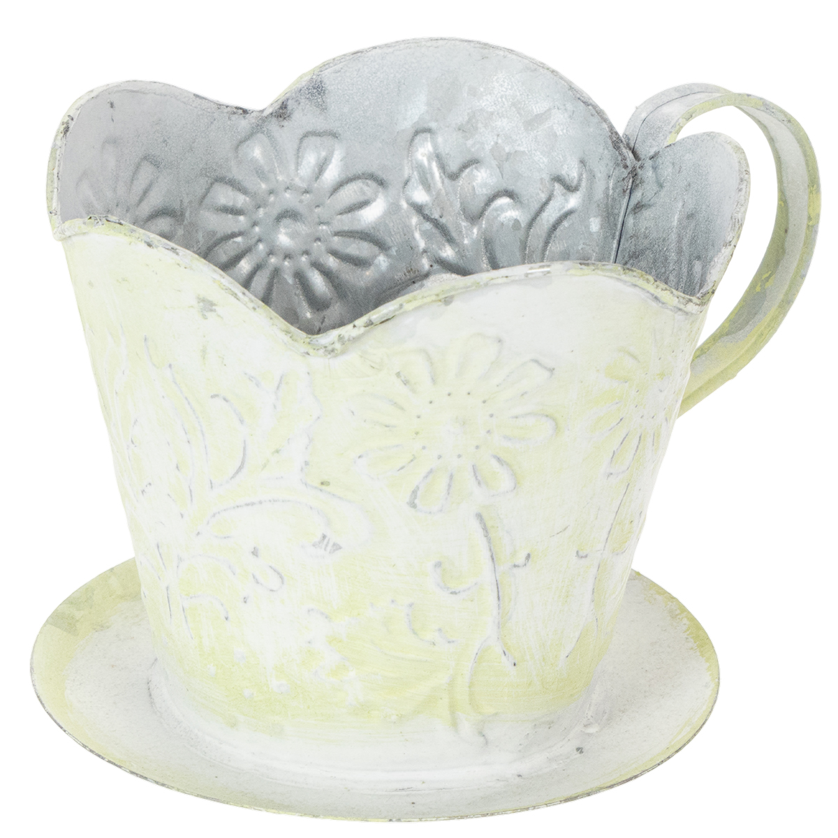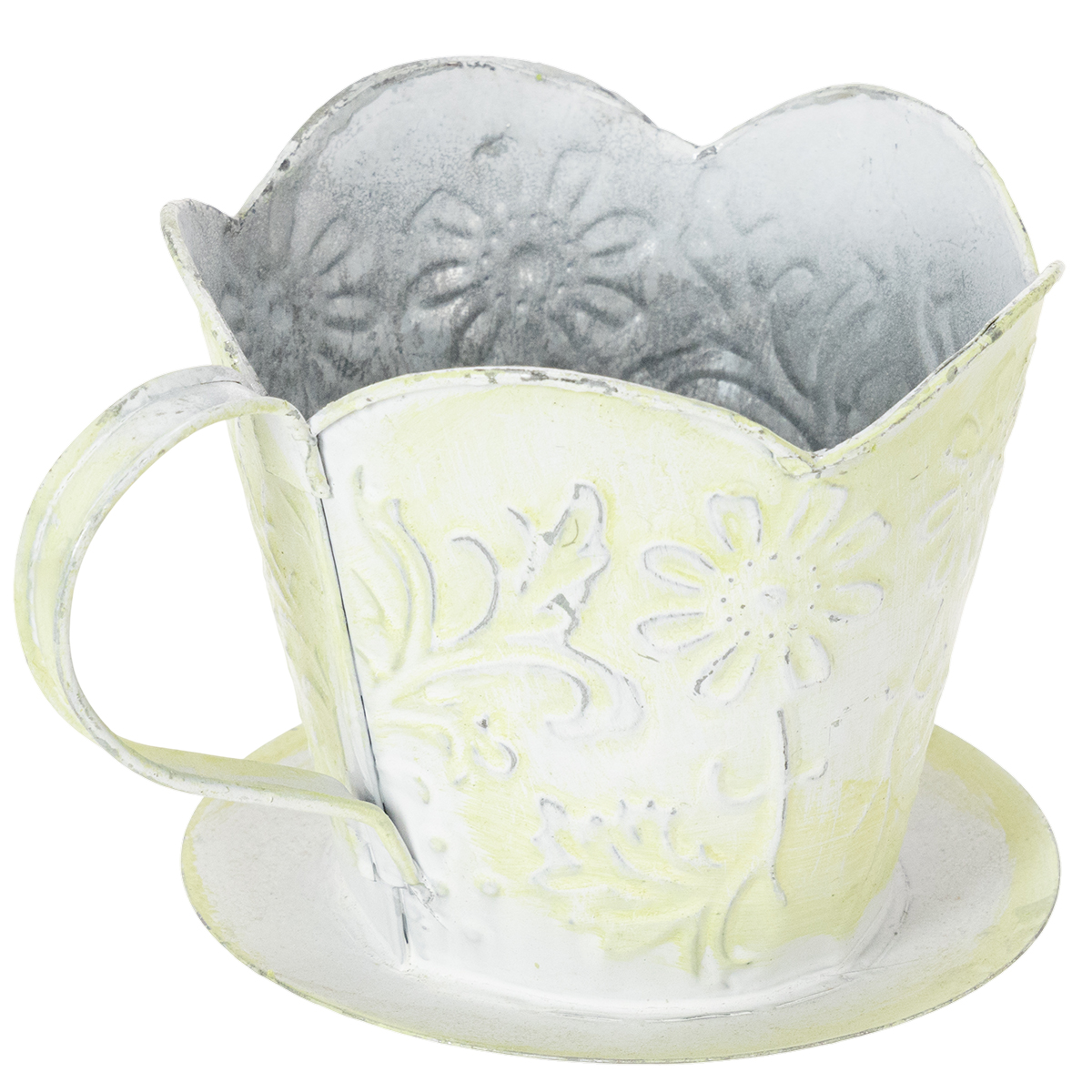 Vaso per piante, portafiltro da caffè decorativo, tazza in metallo per piantare, decorazione floreale verde e bianca, shabby chic, H11cm Ø11cm