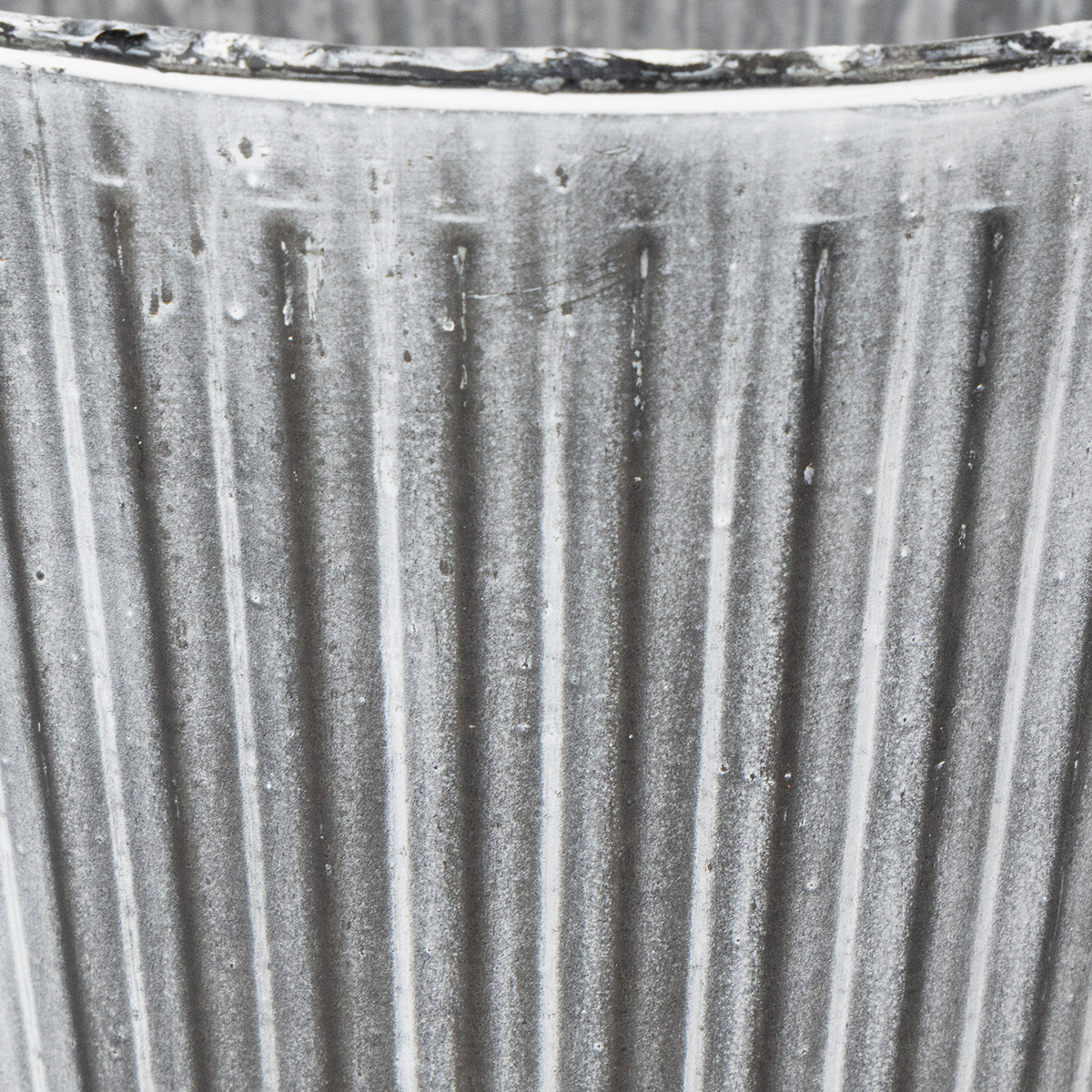 Combina il vaso rotondo in metallo con altri vasi in metallo con goffratura a righe della serie di vasi per piante di alta qualità di VIANA della nostra gamma!